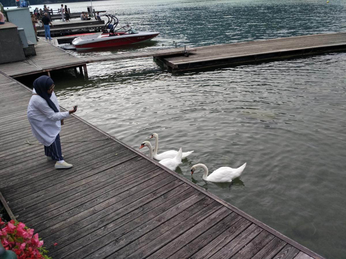 Не менее вездесущие девушки в восточных нарядах фотографируют местных лебедей и уточек.