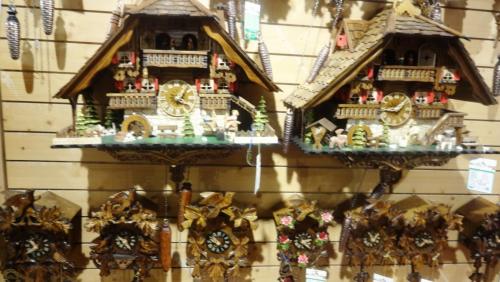 Но это только одни часы, пусть и большие. Настоящее раздолье любителей кукуещего и тикающего, к коим отношусь и я, ждало в магазинчике с названием Дом 1000 часов. Одно жаль - не получилось посмотреть представление, которое разыгрывают мишки в домике над входом.