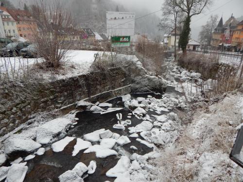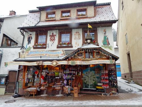 Сам Триберг - городок небольшой, примостившийся у подножья шварцвальдских холмов. Несколько улиц, переходящих  в лес, небольшие домики, среди которых изредка проглядывают пятиэтажные гиганты, сувенирные и продуктовые магазинчики, вывески, новогодние украшения, дымок из труб...Романтика.