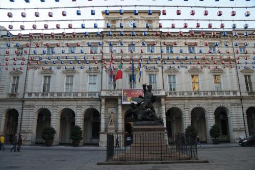 Для меня весь тур - было сплошное открытие, и Турин стал крупной жемчужиной в этом драгоценном ожерелье. И так знакомство с городом началось с его центральной площади – площади Кастелло, правда если можно так выразиться с его тыльной стороны. Мы как будто выходили из тени к свету, как в прямом, как и в фигуральном смысле.