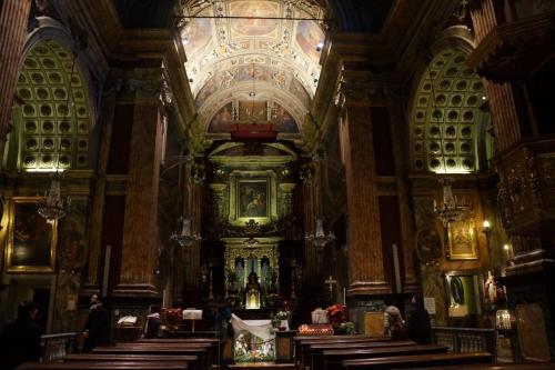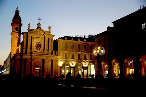 Справа находится церковь Сан-Карло Борромео (Chiesa di San Carlo Borromeo). Назвали её в честь святого, который пришел в город помолиться Святой Плащанице. Её возвели раньше, по приказу Карла Эммануила I Великого (Carlo Emanuele I di Savoi) в 1619 году. Современный вид фасад приобрел в девятнадцатом веке.