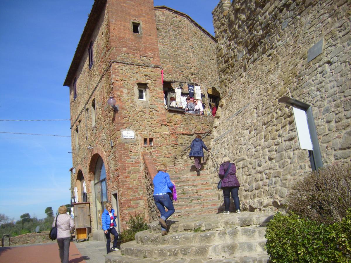Мы же в 11.15 отправляемся на дегустацию вина и оливкового масла (20 евро) на близлежащую ферму  Bacco a Petroio   Едем минут 15-20, автобус опять подъехать не может, идем вверх пешком, но недолго.  Сначала слушаем рассказ о производстве вина на этой ферме. потом начинается дегустация. Нас усаживают за большой общий стол. Дегустируем попеременно 5 видов вин, на столе корзиночки с хлебом (очень вкусный), перед каждым поднос, на котором 3 вида брускетты ( с оливковым маслом и чесноком, с помидорами, с печенью). Дегустация всем понравилась, после нее была возможность купить понравившееся вино. Те. кто планировал купить оливковое масло, были разочарованы - масло кончилось. Хозяйка объяснила, что в их климате оливки созревают  небольшие по размеру и их не так много, так что к весне масло кончается.