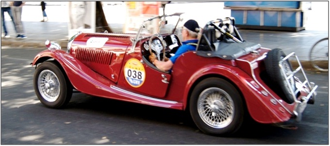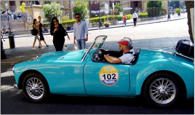 Шли мы в несколько растрёпанных чувствах – вроде бы и увидели что-то новое, но вот состояние этого «нового» приводит в уныние. Впрочем, судьба знала, как привести наши чувства в равновесие – на этой центральной улице, словно в продолжение вчерашнего праздника ретро, выстроились участники автопробега (тоже какого-то исторического клуба). Если в Палермо это был «шик и роскошь» буржуазии, то здесь - «маленькие радости жизни» простых итальянцев. Роскошные болиды сменились на скромные трудяги-автомобили, в том числе, конечно же, легендарные «Фиат – 5000».