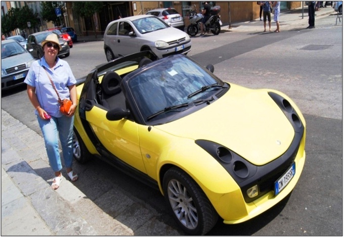 За крышами автомобилей виден фасад церкви (название не отложилось в памяти). Однако, автомобильная тема не отпускает и здесь: на паперти нас встречает авто совсем другого класса – наверное, падре приехал мессу проводить.