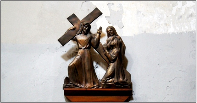 В церкви много других картин. Есть также скульптурное распятие, горельефы и керамическая «Библия для неграмотных».