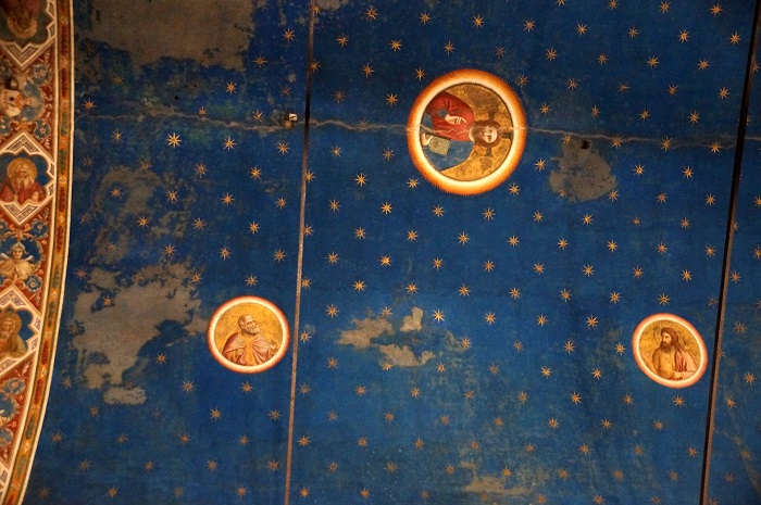 Опубликовано 9 марта, 20187 г. comment_713802 А теперь изюминка Падуи – Капелла Скровеньи. Она была построена в 1305 году, а в 1306 году расписана Джотто, всего 37 фресок. В капеллу можно попасть только через внутренние дворики бывшего монастыря. Время посещения капеллы строго ограничено – всего 15 минут. Внутри может находиться не более 20 человек одновременно. Перед посещением капеллы показывают фильм (на английском языке). Капелла состоит из одного-единственного помещения, потолок и стены которого представляют собой настоящую живописную поэму, начинающуюся с истории дедушки и бабушки Христа по материнской линии – Анны и Иоакима. Затем идет история самой Девы Марии, ну а потом и Иисуса Христа от Рождества до Вознесения. Все фрески расположены в трех ярусах и смотреть (читать) их желательно в нужном порядке – сверху вниз по кругу. Потолок представляет собой звездное небо лазурно-голубого цвета, который является и фоном большинства фресок-сюжетов. В прошлое посещение, то есть в 2015 году, внутри фотографировать было нельзя, а сейчас – можно. Поэтому помещаю свои фото, они не в хронологическом порядке. Наступил вечер, мы прогулялись по празднично украшенному городу, побродили по магазинам. Хотели поесть в ресторане быстрого облуживания, но, оказалось, что его переделали в достаточно дорогой ресторан с официантками. Время нас поджимало, и мы пошли на стоянку к автобусу. А это ответ на последний вопрос квеста: «Что держал в лапах левый грифон на входе в базилику Святой Джустины?». В саму базилику мы с Ниной не попали – закрыта, но мы обошли её всю вокруг, долго приглядывались к грифону. На площади возвышается соломенное чучело Бефаны, её сожгут 6 января, а вместе с нею сжигают на костре и все невзгоды, болезни и напасти. Это будет означать конец всех новогодних праздников. Вот так прошел еще один день в Италии. Жалоба