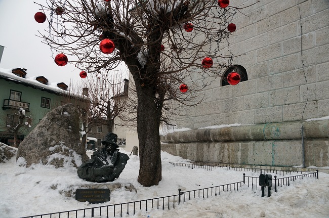 Опубликовано 1 марта, 20187 г. comment_712992 Спустившись на фуникулёре, мы попали в настоящий снегопад. Снег просто валил хлопьями Не увидев на стоянке желтого Мерседеса, ради которого мы спустились, пошли гулять по городу. Права Люба, все горнолыжные курорты похожи друг на друга, будь то Франция, Швейцария или Италия. Но зато каждый отель имеет свои знаки отличия. В одном, например, вот такая мадам У другого подмёрзший лыжник Или же вот такой то ли козёл, то ли баран :biggrin: Городок очень даже симпатичный, около двух часов, мы с Любашей гуляли, постоянно поглядывая на дорогу, ну где же наши коллеги? Вдоволь нагулявшись под обильным снегопадом, иногда превращающемся в дождь, мы с Любой решили пойти в автобус, который уже наполовину был заполнен уставшими и подмокшими нашими туристами. Присоединившись к этой компании, мы прикончили запасы, приготовленные для встречи с Татьяной bultatg, решив, что из-за погоды коллеги не приедут и тут, наконец-то, увидели, как на стоянку пытается припарковаться жёлтый Мерседес. Ура! Мы встретились! Кроме Татьяны, повстречались ещё со многими знакомыми по предыдущим совместным путешествиям. Фото со встречи у меня тоже нет, так как я выскочила из автобуса без фотоаппарата, но есть фотка из кафе, которую мне прислала bultatg Жалоба