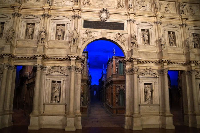 Опубликовано 14 марта, 20187 г. comment_714605 Продолжу наше путешествие. Остльные пусть догоняют. 5 января у нас начался в прекрасном городе Виченца. Город, который своим настоящим обликом обязан практически одному человеку – Андреа Палладио. Благодаря ему город стал красивейшим архитектурным памятником. Андреа Палладио всю жизнь создавал в городе невероятные здания и великолепные сооружения. В конце двадцатого столетия город Виченца был внесен ЮНЕСКО в список городов, что несут историко-культурную ценность. Наша экскурсия началась на Пьяцца дель Изола у Палаццо Кьерикати – это прекрасный дворец, построенный в стиле ренессанса по проекту Андреа Палладио. Главный фасад Палаццо был выполнен из трех частей: его центральная часть имеет крытый балкон, а две крайние - украшены прекрасными лоджиями. Другой достопримечательностью фасада выступают совмещенные колонны, выполненные в два ряда. Позже мы вернемся сюда. Направо от дворца находится вход в ещё один шедевр Палладио – театр Олимпико, последняя работа архитектора, спроектированный им в 1580 году. Все театры того времени строились по типу римского, вот и этот не стал исключением. Вернее, исключением он как раз таки стал, ибо Палладио, в связи с нехваткой места, был вынужден дать своему театру форму не полукруга, а полуэллипса. Вот так и родился этот шедевр архитектуры с рядами для зрителей, расположенными амфитеатром, колоннадами, античными статуями и барельефами. И необычной сценой с уходящими вдаль улицами, синим небом, дворцами и скульптурами. Даже не верится, что это просто иллюзия – каких-то 10 шагов внутрь сцены. Жалоба