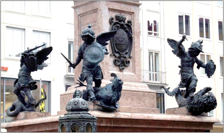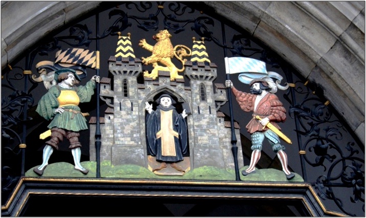 Опубликовано 10 марта, 20187 г. Автор comment_713892 Закончив осмотр этого маленького кусочка Италии, снова выходим на Одеонсплац. Сейчас ничего не напоминает о его мрачном прошлом, а ведь именно здесь произошли первые стычки национал-социалистов с полицией во время «пивного» путча, именно здесь пролилась первая кровь, превратившаяся впоследствии в реки Второй мировой. На площади стоит ещё один образчик итальянской культуры. И хоть называется он «Фельдхернхалле», планировавшийся как «Зал баварских полководцев», внешний облик сразу отсылает во Флоренцию – рядом с галереей Уффици там находится Лоджия Ланци, явившаяся прообразом мюнхенского строения. Правда, у итальянцев там выставлены скульптуры Челлини и Джамболоньи, а у баварцев – скульптуры неоднозначных графа Тилли (того самого, которого посрамил бургомистр Ротенбурга) и князя Вреде. Сами же мюнхенцы об этом говорят: «Весёленькое дело! Один из них не баварец, а второй - не полководец». По поводу же центральной фигуры мюнхенцы тоже не перестают упражняться в остроумии: «Истинный баварец: знамя отдам, женщину – никогда!». Решаем немного пройтись по Людвигштрассе, для которой и строился как ориентир Фельдхернхалле. В своё время это была самая широкая и самая богатая улица Мюнхена, по которой любили гулять богатые бюргеры. Сейчас здесь тоже встречаются типажи. Под дождём, среди мокнущей травы газонов, снег можно увидеть только искусственный. Доходим до какого-то странного памятника и решаем повернуть обратно на Мариенплац – погода не располагает к прогулкам. На Мариенплац от дождя мы укрываемся в галерее Новой Ратуши в окружении каких-то персонажей, подчас даже скабрезных (один «Весёлый вонючка» чего стоит). Посмотрели как на цоколе колонны Девы Марии какие-то воинственные ангелочки деловито умерщвляют всяческую нечисть – воплощение бед и страданий: лев – война, дракон – голод, змий – ересь и неверие, василиск - чума. Прямо на углу Новой ратуши расположен фонтан Фишбруннен, который из-за тёплой зимы даже не отключили - ещё одна загадка для пытливых туристов. Называется он «Рыбный» и венчает его рыба. А вот у подножия сидят подмастерья мясников. Дело тут вот в чём. Это один из самых старых фонтанов города, своей историей уходящий аж в середину XIV века. Изначально он просто предназначался для снабжения водой. Позднее, когда здесь обустроился городской рынок, место у фонтана облюбовали торговцы рыбой – они даже пускали живую рыбу в фонтан. Ещё позднее этот фонтан привлёк внимание мясников, а точнее – их подмастерий. Они, не выходя с рынка (а мясных лавок здесь тоже было предостаточно), проводили здесь обряд посвящения, исполняя свой «прыжок мясника», во время которого нужно было с головой окунуться в фонтан, чтобы смыть все грехи. Это и вдохновило на создание в XIX веке скульптурной композиции: в основании восьмигранного постамента (по форме фонтана) были установлены фигуры четырёх учеников мясника, чуть выше – фигуры трёх музыкантов, а венчал композицию сам мастер-мясник с поднятым кубком. Во время последней войны фонтан серьёзно пострадали свой нынешний вид приобрёл в ходе реставрации: фигуры подмастерьев оставили, музыкантов перенесли к Карловым воротам (Карлстор), а вместо мясника (очевидно, скульптура была утрачена из-за бомбардировок) водрузили большую бронзовую рыбу, как напом