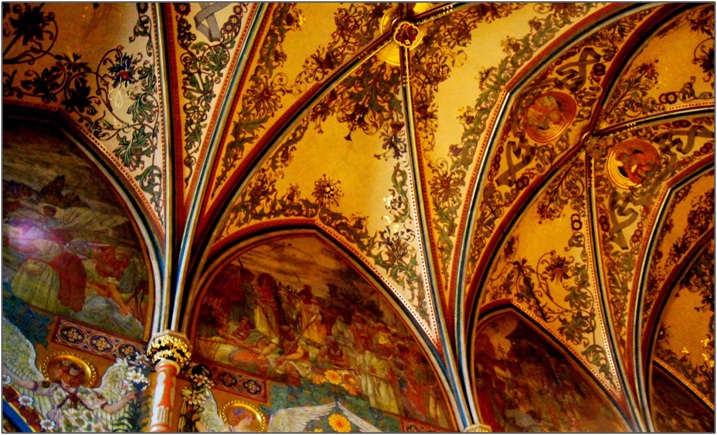 Опубликовано 31 марта, 20187 г. Автор comment_716908 Внутри церковь, наверное, один из самых украшенных соборов Праги. Остальные церкви, учитывая традиционную атеистичность чехов, больше похожи на какие-то музеи религии. Весь интерьер от пола до потолка покрыт росписью и фресками, очень много скульптур и витражей. Есть целые композиции со ссылками на соответствующие главы Библии. В витражах по технике и по композиции сразу угадывается ХХ век, но по тщательности исполнения они тоже производят впечатление. И, конечно же, над всем витает дух Рождества. А вот и ещё одна вариация темы, как был посрамлён Нечистый. По одной из версий, служка этой церкви был страшным картёжником (даже в средние века встречались лудоманы), и Дьявол заключил с ним сделку: в обмен на везение он забирает его душу. Ну, естественно, служке тут же попёрло, как заговоренному. Год проходит, два – и всё бы ничего, да близится срок расплаты. Взмолился служка и услышал его апостол Пётр. Услышал и решил: если Дьявол успеет за ночь, до того, как служка произнесёт последнее слово заутренней мессы, принести из римского собора Сан-Пьетро колонну, то так и быть – апостол отдаст его душу Нечистому, ну а если нет – то нет. На том и поладили (вот ведь чёрт наивный – ну нигде подвоха не чует!..). Дунул чёрт в Рим, но решил схитрить и схватил колонну из первого попавшегося храма. Врешь! Не … кх-м… не обманешь! И где-то в районе Венеции долбанул его апостол так, что чёрт с колонной плюхнулся на дно моря. Несколько раз пытался всплыть, но каждый раз получал по рогам. В общем, когда прилетел он на Вышеград, служка как раз произнёс последнее слово мессы. Ай-ай. Как не повезло. Разобиделся чёрт и скинул колонну прямо на крышу церкви. До XVIII века пролежала она чуть ли не в алтаре, пока очередной Папа римский не приказал вынести её наружу. Вот такое устное народное творчество. А на фреске можно видеть церковь в очередном перестроенном варианте. Кроме всего прочего, изнутри церковь украшает большое количество скульптур (по моему, это резьба по дереву). Особенно мне нравятся пьета и скульптура Девы Марии Непорочной (обычно её украшают белыми лилиями, но на Рождество – естественно, еловыми ветвями). Да, забыл сказать, что все украшения в церкви выполнены чешскими мастерами, без привлечения скульпторов и художников Европы. И ещё хотелось бы остановиться на одной детали – на колоннах изображены святые. Мы всегда «здороваемся» здесь с двумя – со святым Лонгином и со святым Норбертом. Св. Лонгин личность интересная – римский легионер, который стоял в охранении креста и ударом копья прервал страдания Спасителя. Впоследствии, конечно же, раскаялся и уверовал. Копьё же его, вместе с чашей Грааля и терновым венцом считается одной из главных реликвий христианства (копьё Судьбы). В настоящее время есть несколько артефактов, претендующих на подлинность: копьё в Ватикане (базилика Сан-Пьетро), копьё в Вене (палат сокровищ Хофбурга – его ещё Гитлер вывез в Нюрнберг) и копьё в Ереване (Эчмиадзин). В православном пантеоне сотник Лонгин присутствует, но как-то мало упоминается. Св. Норберт тоже нами каждый раз приветствуется, но по другой причине (об этом позже). Ну вот, вроде бы осмотрели всё, что хотели – пора и дальше двигаться. На улице, напротив главного входа, нас ожидает ещё один чешский святой, нам памятный. Вернее, святая – Св