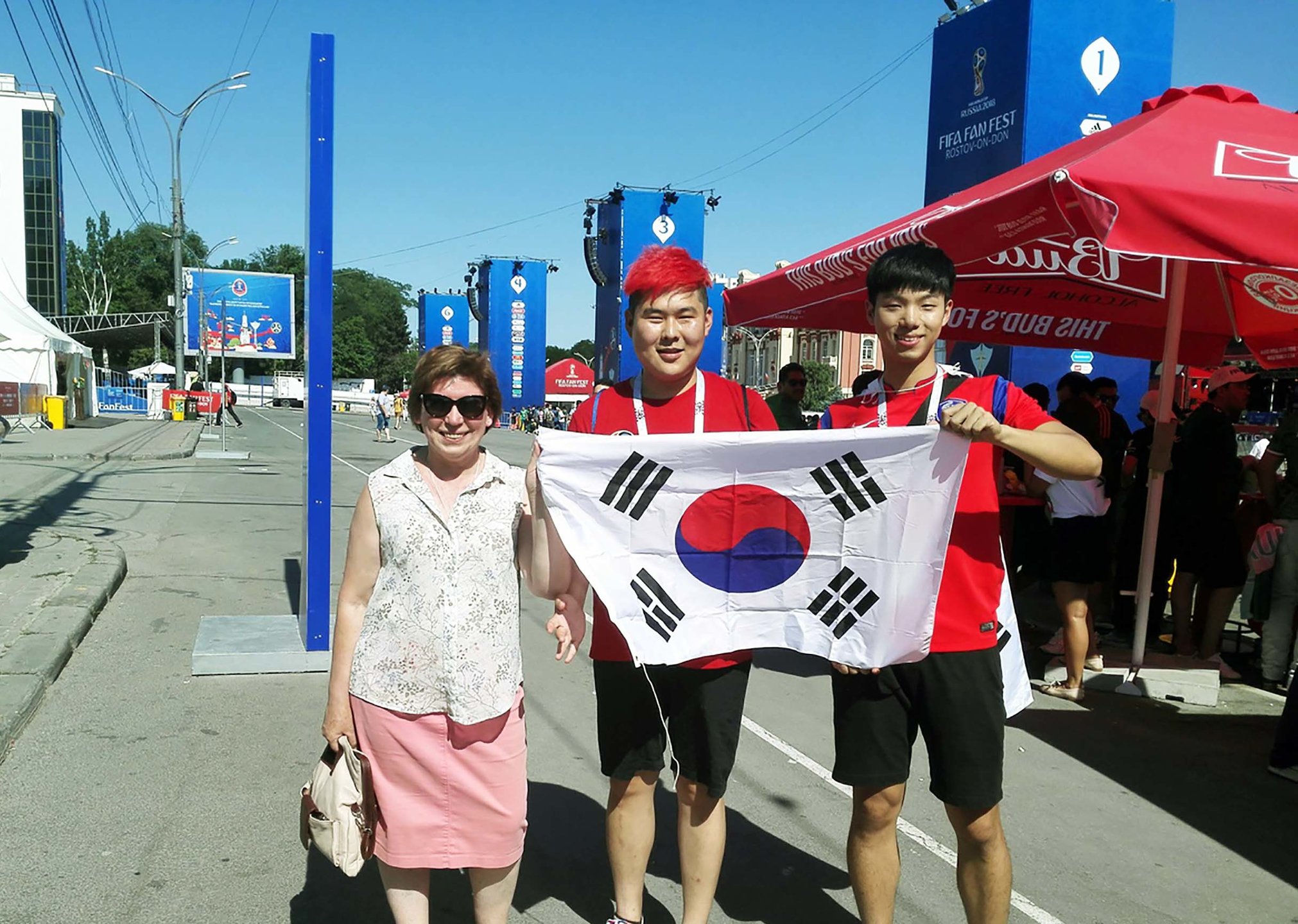 Зато корейских болельщиков практически нет. Отыскала вот парочку парней...