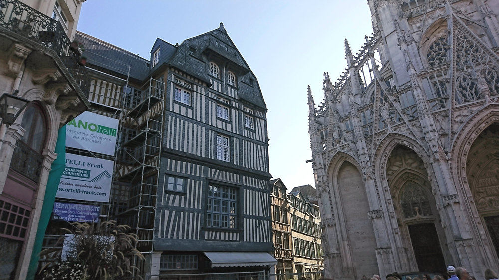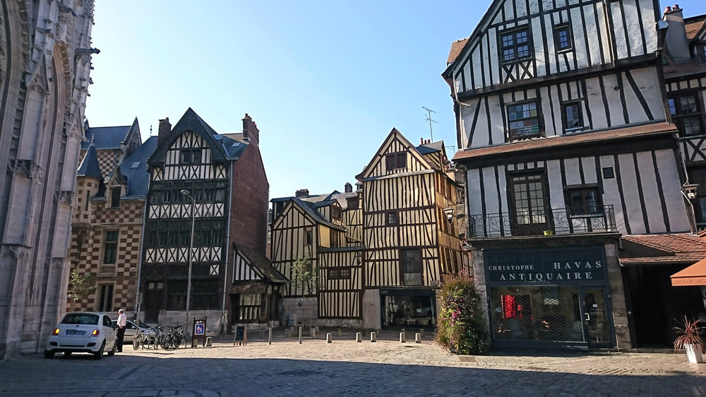 Опубликовано 8 декабря, 20187 г. Автор comment_746293 Руанский Собор запечатлен Клодом Моне в серии из тридцати (а может, и более?) картин , выполненных в одном формате, представляющих собой различные виды собора в зависимости от времени дня, года и освещения. Для создания своих полотен Моне поселился в 1892 г. прямо напротив собора и начал работу. Художника очень увлекла игра света на камне, он пытался уловить «скользящий свет», который появляется и пропадает в зависимости от погодных условий и высоты солнца. Художник просыпался на рассвете и писал картины до темноты. Впервые зрители увидели картины Руанского собора на выставке в 1895 г. В настоящее время картины этой серии знаменитого импрессиониста (разумеется, и не только этой) находятся в разных музеях мира, и, конечно, в Музее изящных искусств в Руане. Дом напротив собора, где жил Клод Моне. Собор в "профиль". И еще в Руане хорошо сохранились чуть ли не две тысячи фахверковых домов. Признак старины дома - это когда второй этаж выступает над первым, а третий – над вторым. Мимо них нет желания резво пробегать. Фахверковые дома хочется читать как книгу, ну, или хотя бы рассматривать, как картинки в ней. И кстати, в этих домах до настоящего времени проживают реальные люди. А домам по несколько сот лет, между прочим! Но среди них есть домики и помоложе, и стилизованные под фахверк. Но об этом совершенно не задумываешься там, на старинных улочках среди царства фахверка. Жалоба