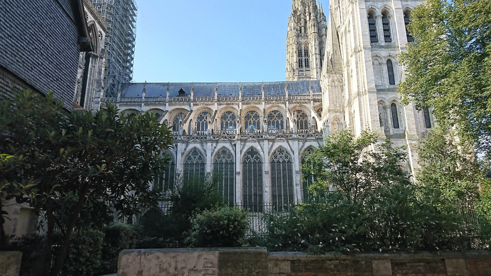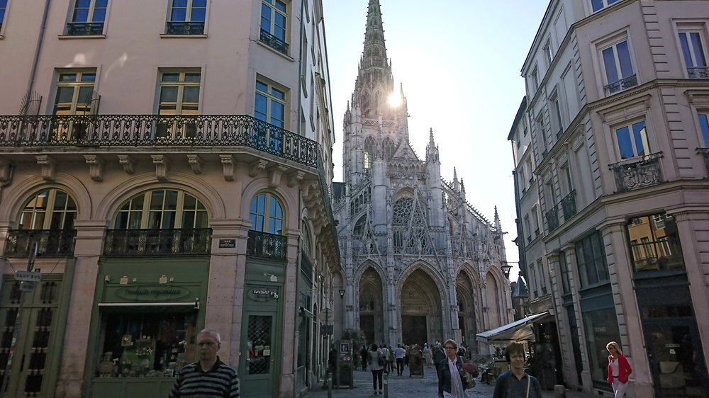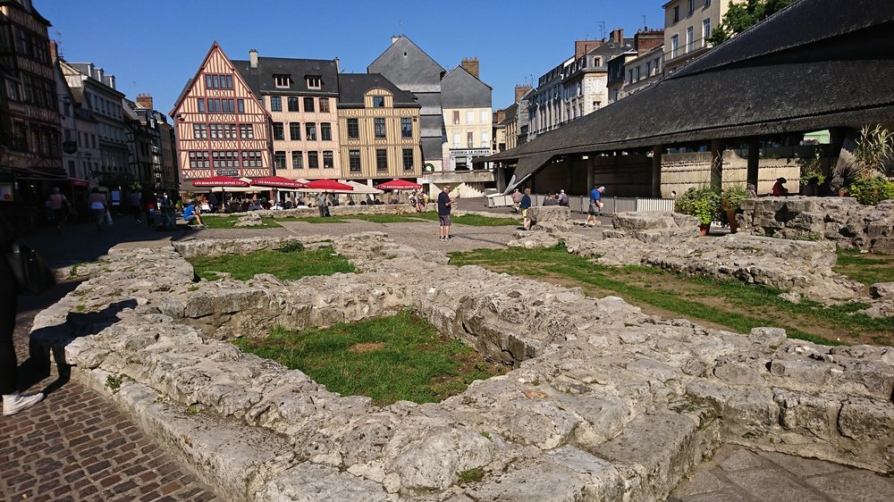 Опубликовано 9 декабря, 20187 г. Автор comment_746389 Руан – город, в котором трагически прервалась жизнь национальной героини Франции Жанны д’Арк. В память о ней в Руане многие архитектурные сооружения носят ее имя. После Второй мировой войны на Старорыночной площади города был возведён собор Святой Жанны д’Арк. Это большой современный архитектурный комплекс, включающий в себя помимо собора крытый рынок. Крыша собора напоминает костёр, на котором и была казнена Жанна д’Арк. На месте костра поставлен высокий мемориальный крест. Камни исторические. На этих камнях сидели святые отцы, приговорившие Жанну и наблюдавшие за казнью. Ужас какой! А потом было свободное время. Погуляли сообразно настроению и интересам на тот момент. Жалоба