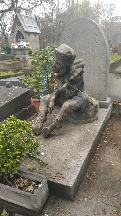 Опубликовано 17 января, 20196 г. Автор comment_750864 1 января 2019 года, Франция, Париж, Монмартр!!! Итак, утром 1 января мы отправляемся на прогулку на любимый Монмартр. Наш путь лежит по авеню Клиши до площади Клиши. на площади находится памятник известному наполеоновскому маршалу Монсею. Именно он в 1814 году руководил здесь, у заставы Клиши, обороной Парижа от русских и союзных войск. От площади Клиши мы поворачиваем налево и идем мимо кладбища Монмартра. И, конечно, мы заходим на кладбище. Я хочу поклониться своей любимой Далиде. Жаль, что оба цветочных магазинчика около кладбища сегодня не работают, и нельзя купить цветы. Я уже на этом кладбище была несколько раз, но только сегодня практически рядом с могилой Далиды вижу могилу известного архитектора и строителя Огюста де Монферана, автора знаменитого Исаакиевского собора в Санкт-Петербурге. И вот мы уже около могилы Далиды. И как всегда здесь живые цветы, и как всегда здесь народ! Проходим мимо скромной могилы знаменитой танцовщицы Мулен Руж, создательницы французского канкана, Луизы Вебер, по прозвищу Ла Гулю. Именно ее увековечил на своих афишах Тулуз-Лотрек. Вот не совсем обычная могила также очень известной французской певицы Франс Галль. Подходим также поклониться нашему известному танцовщику Вацлаву Нижинскому. Очень интересный памятник! Вацлав изображен в одной из своих самых известных ролей - Петрушки. Направляемся к выходу с кладбища и по дороге проходим мимо памятников знаменитому Генриху Гейне и Гектору Берлиозу. С кладбища Монмартра мы практически сразу попадаем на улицу Лепик, которая должна нас вывести прямо на вершину Холма. Жалоба