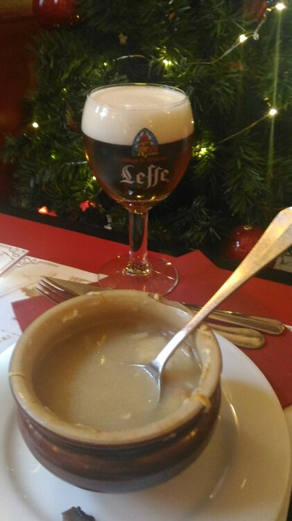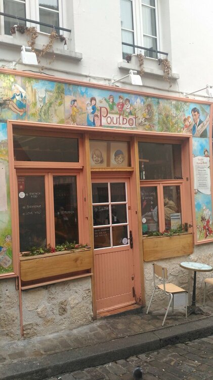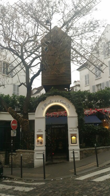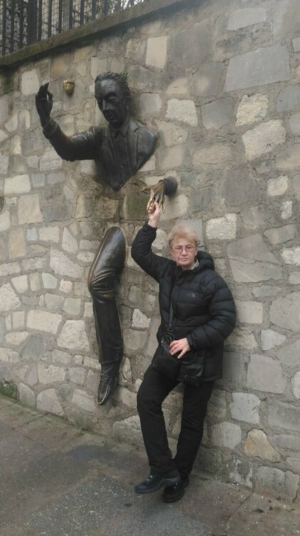 Опубликовано 18 января, 20196 г. Автор comment_750997 1 января 2019 года, Франция, Париж, Монмартр!!! С кладбища Монмартра мы выходим на улицу Лепик, которая выводит нам практически к центру Холма - площади Тертр. На самой улице Лепик видим много красивых зданий. Мы уже подходим к знаменитой Мулен де ла Галет, которую обессмертил в своей картине "Бал в Мулен де ла Галет" Ренуар. Рядом находится дом, в котором много лет жила на Монмартре знаменитая Далида. Недалеко находится знаменитый Бато Лавуар (Корабль - Прачечная), где жил в свое время в очень жестких условиях еще никому не известный Пабло Пикассо с другими молодыми художниками. Идем по традиции поздороваться с Человеком проходящим сквозь стены, знаменитым господином Дютийёлем, - это гарантия возвращения в Париж в очередной раз (пока работает!). Ну а рядом мой любимый ресторанчик Le Consulat. Время обеденное, и мы решаем пообедать в Le Consulat. На аперитив берем кир (белое сухое вино с черносмородиновым ликером). Берем, конечно, мой любимый луковый суп (он здесь самый вкусный из всех, которые я ела где-либо, а ела этот суп много раз и в самых разных местах и городах Франции). Я беру еще картошку фри (она здесь очень вкусная!). И еще, конечно, любимое бельгийское пиво Leffe. Володя берет мидии. Ну, и конечно, всё было очень вкусно и ароматно! В очередной раз меня просто покоряет неповторимая атмосфера старинного парижского ресторанчика. Уходить не хочется. Но у нас впереди экскурсия с группой, а мы еще толком не видели Монмартра, поэтому с сожалением выходим из ресторанчика и продолжаем нашу прогулку по Холму. Жалоба