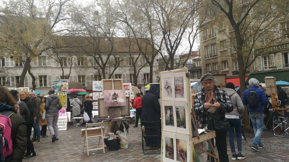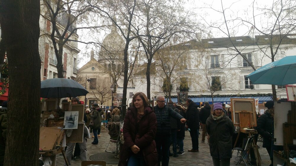 Опубликовано 19 января, 20196 г. Автор comment_751127 1 января 2019 года, Франция, Париж, Монмартр!!! Как нам не жаль, но время нас поджимает, и мы с огромным сожалением покидаем уютный старинный ресторанчик Le Consulat. Мы выходим на улочки Монмартра. Как же это здорово и классно - гулять по Холму и дышать неповторимым волшебным монмартрским воздухом! Как же здесь хорошо! И какая здесь классная атмосфера! Подходим к знаменитому Розовому Дому, связанному с именем известного художника Мориса Утрилло. Ну а рядом знаменитое кабаре "Проворный кролик", где я уже была 2 раза в рамках тура Божоле с Наташей Луари. Напротив находятся знаменитые виноградники Монмартра. Ну а дальше мы двигаемся по направлению к центральной площади Монмартра - площади Тертр. Проходим мимо очень симпатичного ресторанчика Пульбо (это имя известного художника Пульбо). Я в этом ресторанчике была 2 раза - очень вкусные улитки, но не совсем вкусный луковый суп. А дальше музей и галерея Сальвадора Дали. И вот мы на главной площади Монмартра - площади Тертр. В теплое время года она занята террасами соседних ресторанчиков. Ну а пока здесь царствуют местные художники. Вот на площади знаменитый ресторанчик "Матушка Катрин". Именно здесь русские казаки впервые прокричали своё "быстро", что послужило созданию знаменитых французских "бистро". Сегодня вечером у нас в этом ресторанчике организованный ужин от нашего гида Людмилы Меркушевой. Я, кстати, в этом ресторанчике уже была 3 раза с моими французами, очень атмосферное место! Ну а мы продолжаем нашу прогулку по Холму. Жалоба