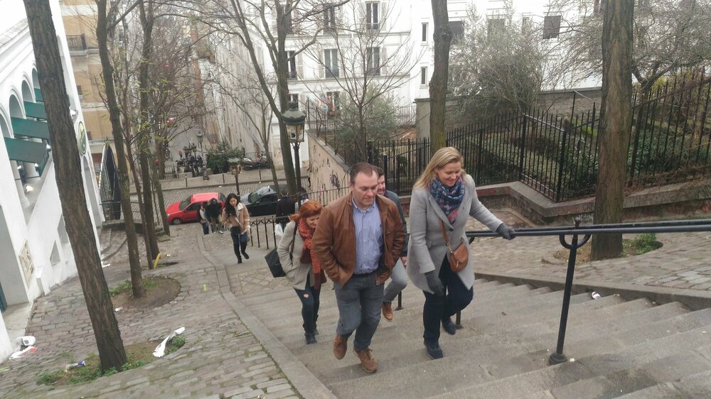 Опубликовано 20 января, 20196 г. Автор comment_751276 1 января 2019 года, Франция, Париж, Монмартр!!! Мы всё еще на Монмартре!!! Выходим с площади Тертр и направляемся к базилике Сакре-Кёр. Но сначала мы видим перед собой старинную, XIII века, бывшую когда-то церковью деревеньки Монмартр, церковь Святого Петра. А во дворе там продают вкусное ароматное горячее вино и жареные каштаны, но у нас нет на это времени. Ну а мы все ближе и ближе к Сакре-Кёр и проходим мимо знаменитых лестниц Монмартра. А вот и сам красавец Сакре-Кёр. И как всегда толпы туристов! И прекрасный вид на Париж! И этот вкусный запах жареных каштанов, весь Париж пропах ими! И это неотъемлемая и такая классная особенность зимнего Парижа! Время уже к 14.00 часам, а в 14.45 мы должны быть у Опера Бастий, где у нас назначена встреча с группой и нашим гидом для пешеходной экскурсии по Марэ с Сережей Дейликом. Пешком нам дойти не успеть, поэтому мы спускаемся в метро. Жалоба