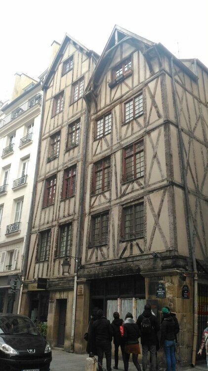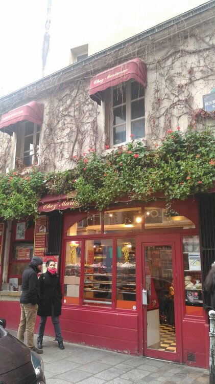 Опубликовано 22 января, 20196 г. Автор comment_751547 1 января 2019 года, Франция, Париж, Марэ!!! Наша экскурсия по Марэ с Сережей Дейликом продолжается. С площади Вогезов мы выходим на улицу Saint-Antoine. Это главная улица квартала Марэ. Затем с улицы Saint-Antoine мы поворачиваем направо и углубляемся в узкие улицы средневекового Марэ. Мы выходим на известную улицу Еврейского квартала Марэ - улицу Розье и слушаем интереснейший рассказ Сережи о судьбе еврейской общины этого квартала. А вот и знаменитый ресторанчик "Ас Фалафель". Стоит огромная очередь из желающих попробовать этот знаменитый фалафель, а я вспоминаю свой визит в этот ресторанчик и это блюдо из турецкого гороха - нута, которое меня ну никак не впечатлило. Но оказывается есть много любителей этого блюда! Ну а дальше нам рассказывают о знаменитой кондитерской "Желтой лавке" Саши Финкельштейна. Сегодня она закрыта, но я и здесь уже была, и это оказалась всего лишь навсего домовая кухня в самом советском смысле этого слова. Рядом еще один известный ресторанчик еврейской кухни "Chez Marianne". Всё, что мы видели с Сережей до сих пор, мне очень хорошо знакомо - это мой обычный маршрут прогулок по Марэ. Но вот Сережа переводит нас на другую сторону улицы Saint-Antoine, и мы углубляемся в улочки уже этой стороны. Это тоже Марэ, но я по этой стороне ни разу не гуляла. А здесь тоже было на что посмотреть! Я впервые увидела фахверк в Париже. Рядом стоит стенд, где рассказывается, что эти здания сохранились со Средних веков, построены они были в XIV веке. В 1508 году королевским указом было запрещено строительство подобных зданий в Париже из-за их хрупкости, что могло послужить их обрушению и спровоцировать несчастные случаи. Эти 2 дома были восстановлены в 1967 году. Рядом видим интересную стену, на которой находится огромное количество имен людей, которые в годы фашистской оккупации Парижа спасали жизни евреев, рискуя своей собственной жизнью. Заходим в соседнюю церковь - церковь Святого Жервэ и Святого Протэ. Жалоба