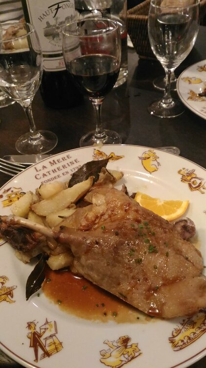 Опубликовано 23 января, 20196 г. Автор comment_751688 1 января 2019 года, Франция, Париж!!! Наша интересная экскурсия по Марэ с Сережей Дейликом подходит к концу. Улица Saint-Antoine плавно перетекает в знаменитую улицу Риволи, и мы выходим на площадь Отель де Виль с великолепнейшей парижской Мэрией. На площади Отель де Виль мы горячо благодарим Сережу за классную экскурсию и с огромным сожалением прощаемся с ним. Мы садимся в наш автобус и отправляемся на Фрагонар, у нас есть еще время до ужина и есть много желающих купить продукцию этой фабрики. Нам сюда не надо, и в ожидании группы (а у нас есть практически час) мы садимся на аперитив в известное кафе Капуцинка по соседству. И я впервые решаю попробовать знаменитый коктейль Апероль Шпритц, о котором я уже много слышала. И хочу сказать, что этот коктейль меня сразу покорил и я стала его фанатом. Ну очень вкусно! Ну а потом мы едем на любимый Монмартр. У нас ужин в знаковом ресторанчике "Матушка Катрин". На Монмартре много народа как всегда. Жаль, что фото получились не очень хорошие! Вот площадь Тертр. У нас очень вкусный ужин от нашего гида. На закуску можно было выбрать улитки или луковый суп, я беру улитки - они были отлично приготовлены! На горячее у нас был знаменитый утиный конфи (я его уже здесь ела), он был вкусен и классно приготовлен. Было, конечно, вкусное вино и очень вкусный десерт - шоколадный фондан. В ресторанчике много интересных надписей. Вот, например, одна: "Да здравствует любовь и вкусная еда!" А рядом еще одна и тоже интересная: "Да здравствует Монмартр и хорошее вино!" И еще одна гласит:"Будем есть и пить, так как завтра мы умрем!" Ну и еще в ресторанчике была живая музыка - классно играл на фортепиано и пел местный музыкант. Великолепные знакомые мелодии! Ну уж, когда он начал играть и петь "Елисейские поля", я с удовольствием ему подпела, удивив его знанием всех слов этой песни! А вот и наш классный гид, автор и организатор этого незабываемого ужина в знаковом ресторанчике на легендарном Монмартре. Сытые и довольные мы возвращаемся по Монмартру к нашему автобусу. Отель недалеко. И здесь нас ждет еще один приятный новогодний бонус - в честь Нового года всех постояльцев угощают бесплатным шампанским, и нам об этом сообщает гид. Шампанское было очень вкусное! Настоящее французское! Сегодня у нас был отличнейший насыщенный день! Спасибо и браво нашему классному гиду! Жалоба