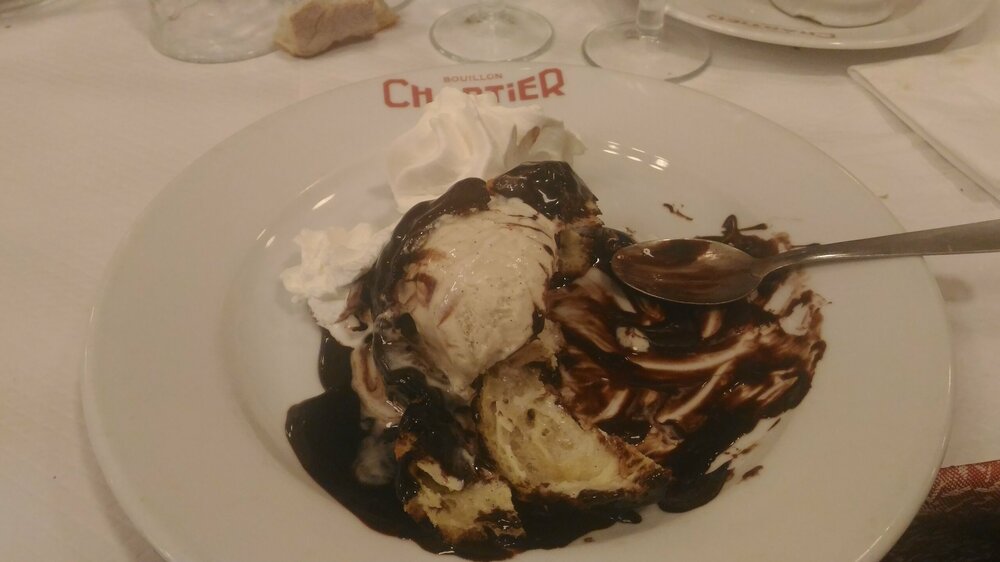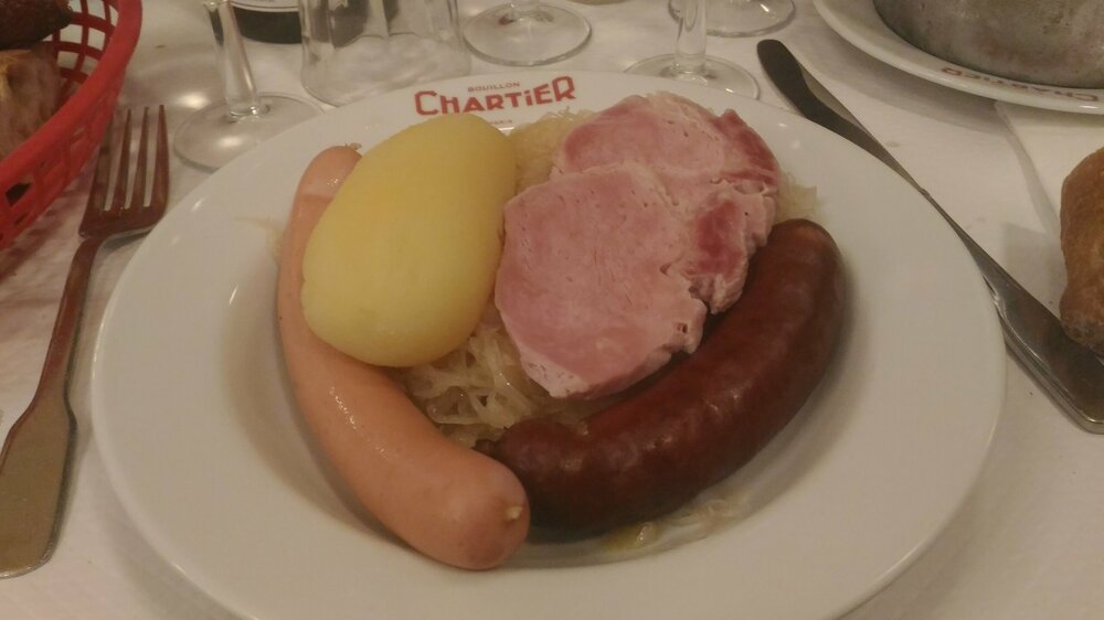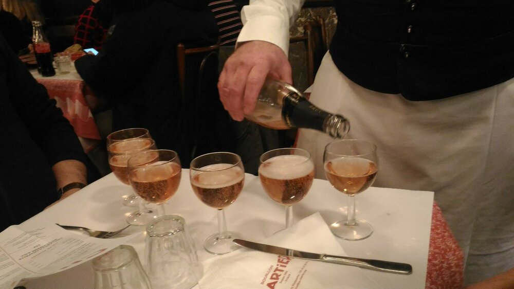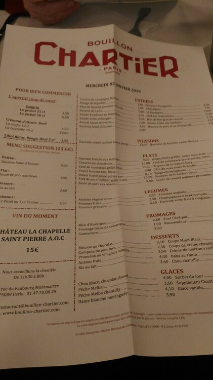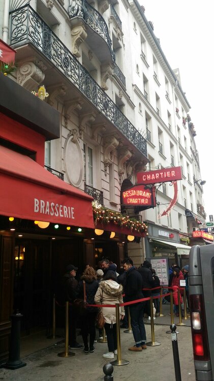 Опубликовано 25 января, 20196 г. Автор comment_751973 2 января 2019 года, Франция, Париж, Большие бульвары!!! Мы в Париже на Больших бульварах с огромным удовольствием любуемся прекрасными парижскими зданиями. И мы отправляемся на встречу с нашими французскими друзьями из города Орли. Подходим к брассери Bouillon Chartier , где нас уже ждут наши французские друзья. На встречу пришли моя любимая подружка Николь со своей сестрой Даниэлой и председатель Комитета побратимства Орли Антуан с женой Алиной, все мои давние и классные друзья! И вот что я хочу сказ. Бытует мнение, что французы - народ жадноватый и сложноватый для общения. Может быть, другие французы такие и есть, но не "мои" французы из города Орли. Общаюсь с ними с 1984 года и поражаюсь их открытости, искренности, щедрости, готовности всем помочь и всем поделиться. Вот и сегодня я очень рада видеть всех моих друзей. Заходим в брассери, здесь уже много народа. Нам сразу же приносят меню. Наши друзья советуются по традиции с официантом по поводу аперитива, он советует взять Crémant d'Alsace Rosé (это розовое шампанское, но сделанное в Эльзасе). И оно было вкусное! Ну а дальше каждый выбирает по своему вкусу. Мы берем улитки и шукрут. Я это здесь уже ела не один раза и знаю, что это очень вкусно. И к этим блюдам по совету официанта берем вкусное белое сухое Buzet. На десерт я беру профитроли - это мороженое в тесте, облитое шоколадом, с шантийи. А мои французы дружно берут на десерт так называемую ромовую бабу, говоря, что она здесь самая настоящая, сделанная по традиционному рецепту и очень вкусная. Французы дают мне попробовать, но я не люблю ром, и это не моё! Ну и обязательный кофе, он здесь также вкусный! А вот и мои классные друзья! А вот Даниэла пишет на салфетке теплые слова для нас! В завершение нашего вкусного обеда я передаю моим друзьям открытки моих учеников с рождественскими и новогодними пожеланиями. Как же это классно - встретиться со своими друзьями в новогоднем Париже! Жалоба