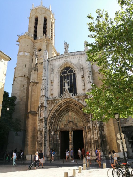 Опубликовано 4 декабря, 20196 г. Автор comment_798451 3 августа 2019 года, Франция, Экс-ан-Прованс!!! У нас сегодня опять интересная программа дня. Наше утро начинается с экскурсии по старинному провансальскому городу Экс-ан-Прованс, или просто Эксу. Этот город считается одним из самых красивых в Провансе. Ну а известен от также тем, что здесь родился, очень любил эти места и рисовал их известный художник-импрессионист Поль Сезанн. Мы в Эксе уже бывали, и это действительно очень симпатичный город. Наша экскурсия начинается на площади, где находится очень красивый фонтан "Ротонда" и памятник Сезанну. От площади начинается старинный и красивый бульвар Мирабо. Здесь сегодня раскинулся провансальский рынок. На бульваре Мирабо находится очень известное кафе "2 парня" ( Les Deux garçons). Наташа говорит, что это кафе было открыто в конце XVIII двумя официантами и очень скоро стало популярным. Его завсегдатаями были Сезанн, Золя и Камю. Бывали здесь и Черчилль, Эдит Пиаф, Ален Делон, Жан-Поль Бельмондо и другие известные люди. Кафе очень красиво, ноу нас, конечно же, нет времени на более близкое знакомство. Подходим к одной из известных церквей Экса - церкви Святого Иоанна Мальтийского, XIII. Гуляем с Наташей по Эксу. Выходим на рыночек Экса. Здесь есть всё, чем славится Прованс. А на площади перед Ратушей видим очень симпатичный цветочный рыночек. Подходим к кафедральному собору Экса - собору святого Спасителя XII. В соборе находится известная работа Николя Фромана, созданная в 1476 году, - триптих "Неопалимая купина". У нас сегодня день без организованного питания, о чем нас предупредили заранее, поэтому в Эксе мы решаем пообедать и идем по совету Наташи в ресторанчик недалеко от места нашего сбора на выезд. Это ресторанчик La Cintra. Времени у нас опять не так уж много, чуть более часа, но горячее блюдо нам обещают успеть приготовить. Пока мы ждали приготовления наших блюд официант приносит нам знаменитую провансальскую тапенаду - это паста из маслин, каперсов, анчоусов, чеснока и оливкового масла. Мы это не заказывали, но оказывается, это здесь дают всем при заказе горячего. Тапенада была очень вкусная, но островатая. На горячее мы берем утиную грудку и морские гребешки (я, конечно же, брала гребешки). Мне кухня этого ресторана понравилась, и было отличное обслуживание. Из Экса мы уезжаем на экскурсию в природный парк Люберон. Жалоба