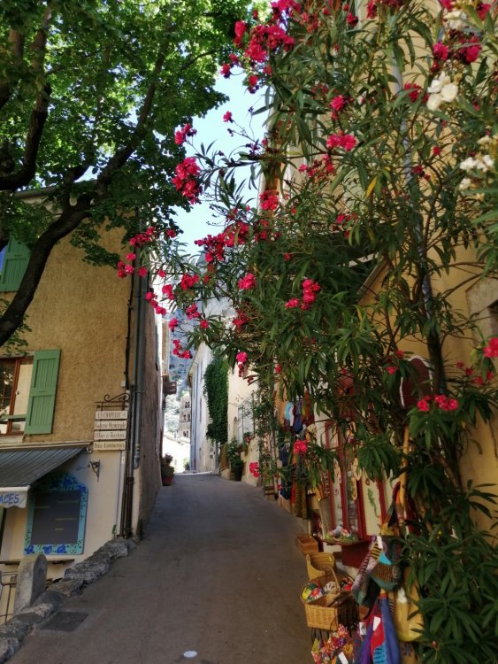 Опубликовано 7 декабря, 20196 г. Автор comment_798840 4 августа 2019 года, Франция, Прованс, Мустье-Сент-Мари!!! Наше путешествие по прекрасному Провансу продолжается. Утром мы отправляемся в еще одно интересное место, новое для нам, - деревню Мустье-Сент-Мари, которая входит в Ассоциацию самых красивых деревень Франции. Но по дороге наша Наташа предпринимает еще одну попытку найти лаванду, и мы заезжаем на одну из лавандовых ферм. Здесь есть и небольшой магазинчик. А рядом поля лаванды, к сожалению уже скошенной. На фотографии в магазинчике видим, как это происходит. Но одно поле здесь оставлено для привлечения клиентов. Цвет, конечно же, уже не тот, но аромат чудесный и неповторимый! А мы подъезжаем к Мустье-Сент-Мари. По дороге Наташа нам рассказывала об этом интересном месте. Деревня находится у Вердонского ущелья на скальном возвышении и окружена скалами. Мустье славится производством глиняных изделий, особенно фаянса. Это мы увидим. Идем с Наташей на экскурсию. Деревня очень красива и живописна. И очень много изделий из фаянса! Желающие могли подняться в небольшую часовенку на скале, преодолев 262 ступеньки. Меня это не заинтересовало. А мы выходим на площадь Церкви к старинной, XII века, церкви Мустье. В Мустье мы успеваем ещё и немного, вкусно и ароматно, перекусить - для обеда не хватало времени. Из Мустье мы отправляемся к Вердонскому ущелью, самому красивому ущелью Франции. Жалоба
