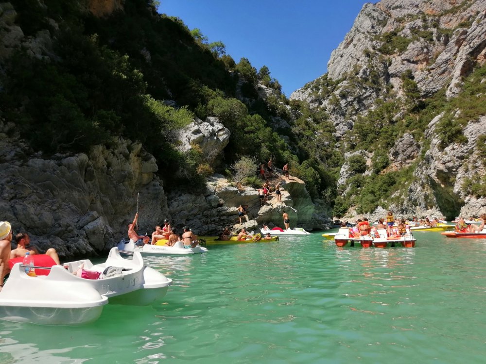 Опубликовано 8 декабря, 20196 г. Автор comment_798944 4 августа 2019 года, Франция, Вердонский каньон!!! Из очень живописного Мустье-Сент-Мари мы отправляемся в знаменитый Вердонский каньон. Слушаем рассказ нашей Наташи об этом природном чуде. Этот каньон сформировался много миллионов лет назад, по ущелью течет река Вердон с ярко-синей и бирюзовой водой, длина 25 километров, глубина до 700 метров. На реке Вердон в XX веке было построено 5 электростанций, и это привело к созданию очень красивых искусственных озер. Вот к одному из этих озер, второму по величине во Франции (длина около 12 километров) с названием Сент-Круа мы и едем. Проезжаем по мосту над рекой Вердон и из окна автобуса уже видим внизу знаменитое Вердонское ущелье с рекой Вердон бирюзового цвета. Вот мы уже на берегу этого изумительно красивого озера. У нас запланировано катание на катамаранах по озеру и Вердонскому каньону. Нам не очень везет - сегодня воскресенье, и на озере огромное количество отдыхающих, все катамараны разобраны, и надо ждать. Тяжелее всего пришлось нашей Наташе - 2,5 часа под палящим солнцем она стояла с нами в очереди, провожала и встречала наши катамараны. В ожидании свободных катамаранов многие из нашей группы идут купаться. Я нет - не люблю купания на час, да и плавать я не умею. Подходит наша очередь, и нашей мини группе достается катамаран с симпатичным номером - 13! И вот мы отплываем и плывем пока по озеру. Впереди уже виден мост, за которым начнется Вердонское ущелье. Вот мы уже в самом Каньоне. Виды завораживающие - бирюзовая вода и лесистые скалы. Мы возвращаемся к пункту проката на озеро Сент-Круа. Великолепная прогулка! Уникальное по своей красоте и живописности ущелье! И великолепного цвета вода! Всё это было супер! Отправляемся к парковке и смотрим сверху с моста на эту изумительную красоту. Около 7 вечера мы возвращаемся в Мартиг в наш отель. Через полчаса все желающие отправятся купаться на Синий берег. Наша мини группа не едет - у нас один фанат купания, Володя, но он уже накупался в Сент-Круа. Мы решаем погулять по Мартигу и поужинать в городе. Жалоба