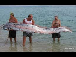 это сельдяной король, он же рыба-ремень - довольно редкий обитатель океана, которого вживую увидеть крайне проблематично. Его длина может превышать 6 метров, толщина - около 10 см и вес до четверти тонны. Живет на большой глубине - до полутора километров.
