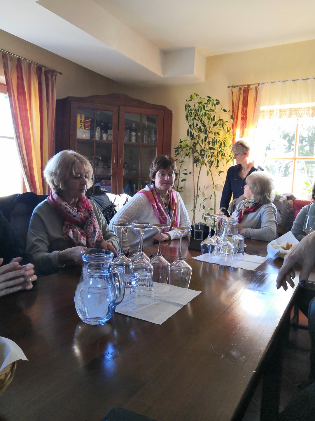 На обед мы не ездили-решили просто погулять,но так как в этот день все магазины были закрыты и мы немного замерзли решили просто доехать с дегустировавшими словенские вина и немного отдохнуть.Уже перед окончанием дегустации мы вышли из автобуса и увидели радушных хозяев(именно радушных,ведь не каждая семья отменит запланированные выходные ради нашей группы) и посмотрели ,какой же вид открывается из окна на виноградные поля и горы.Вид ошеломил.