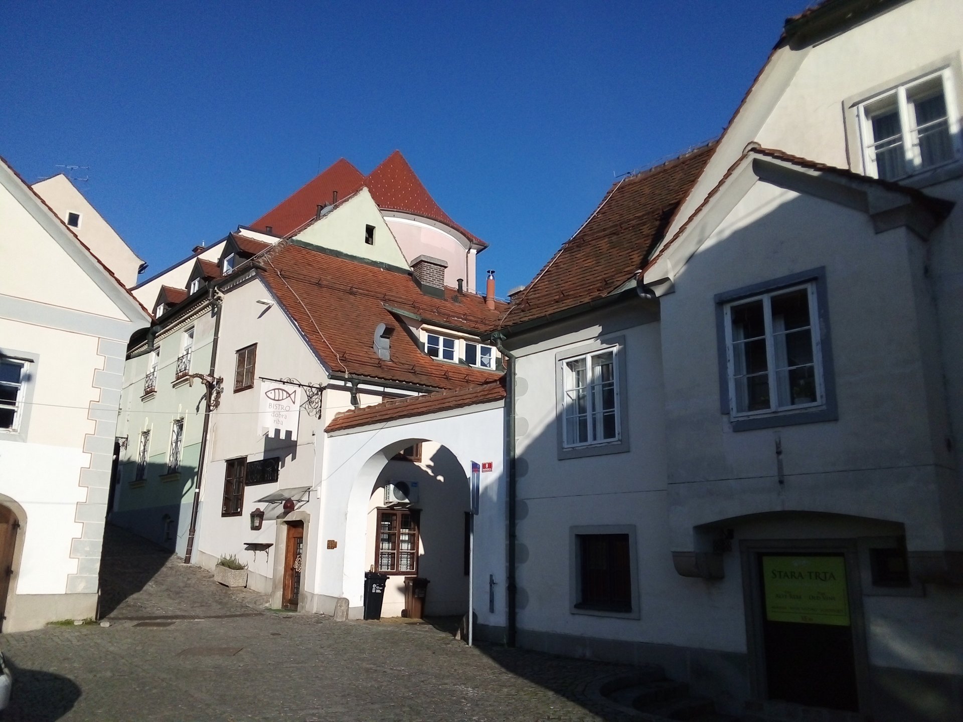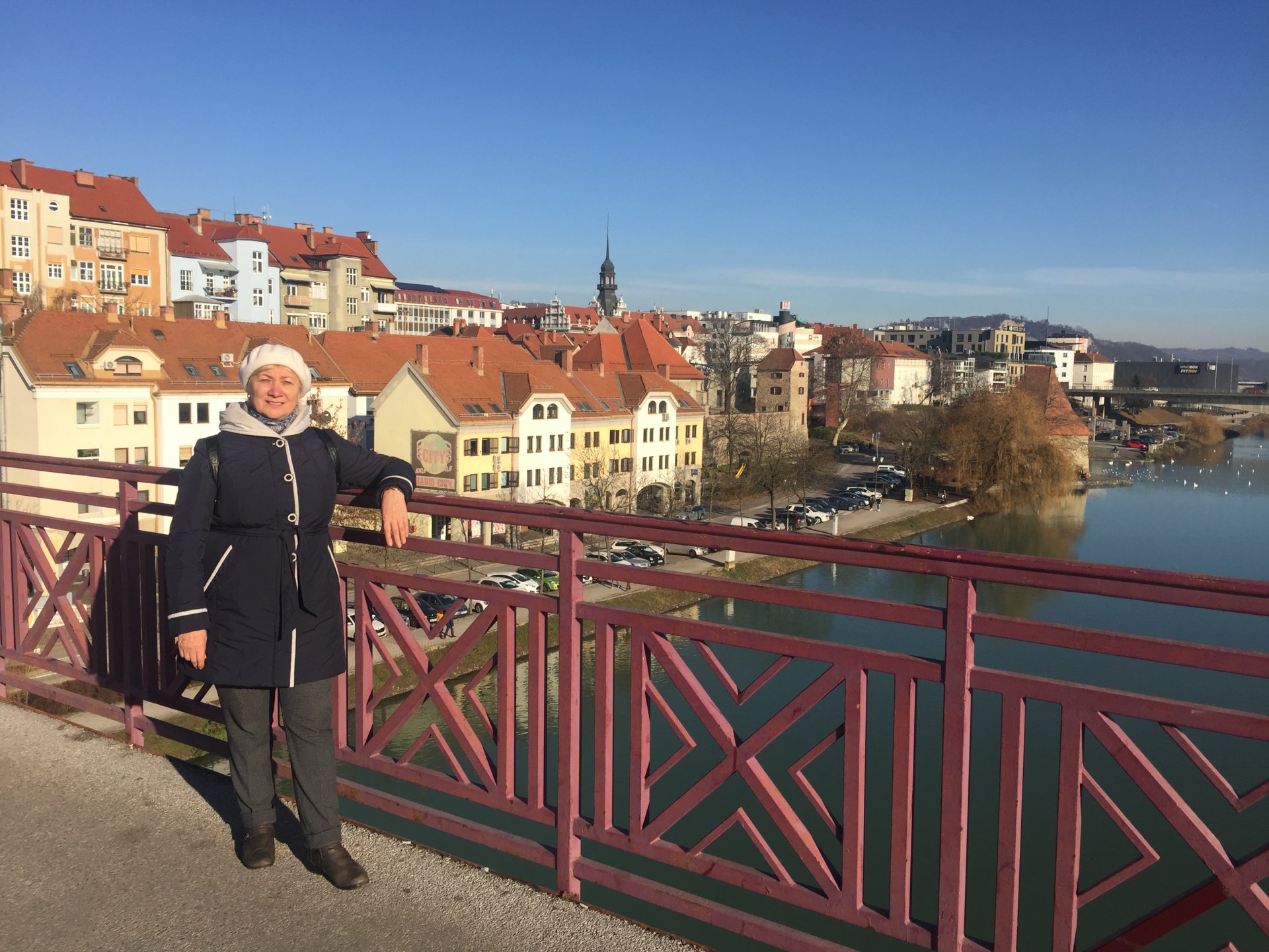 К тому моменту, когда мы прибыли в Марибор, солнце уже сияло очень высоко, и белые домики с красными черепичными крышами смотрелись очень празднично, особенно на фоне синей глади неба и реки Драва.