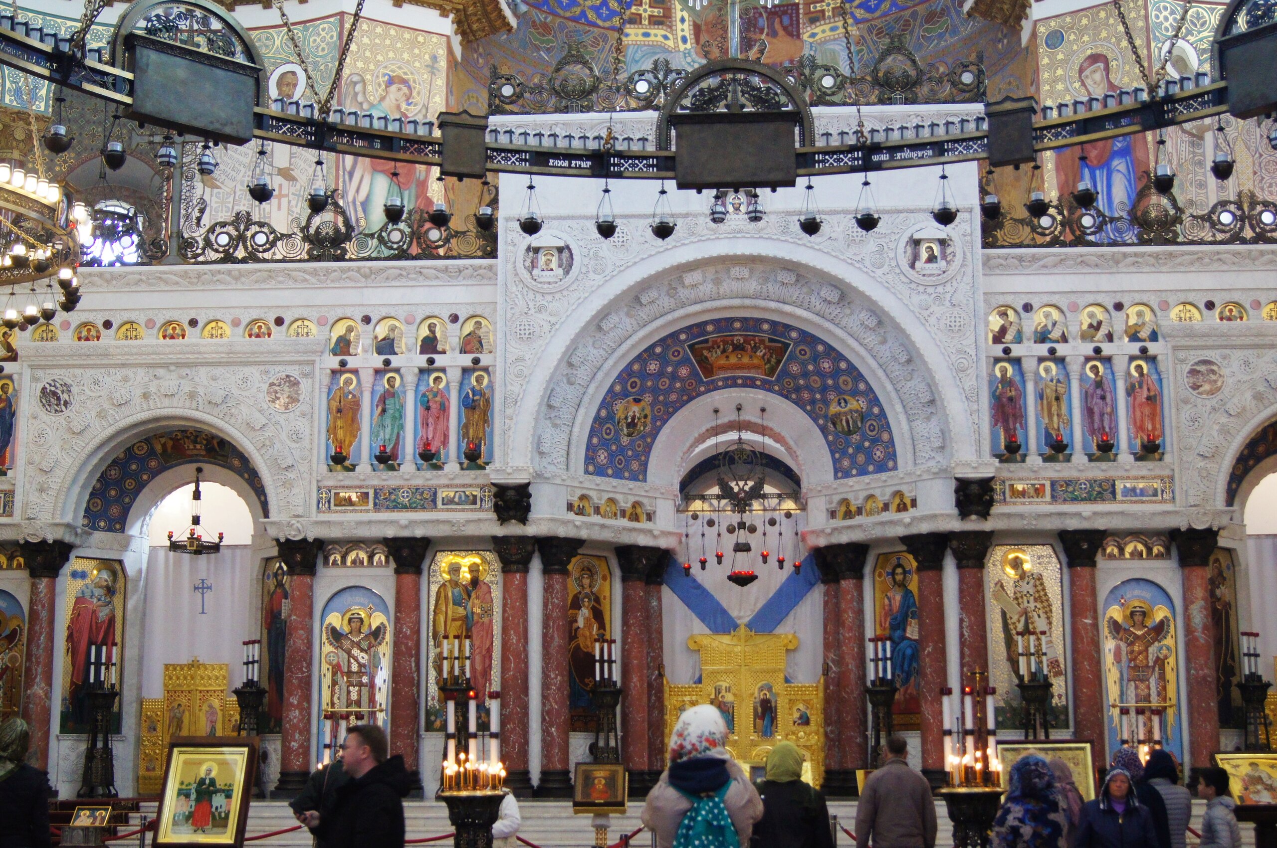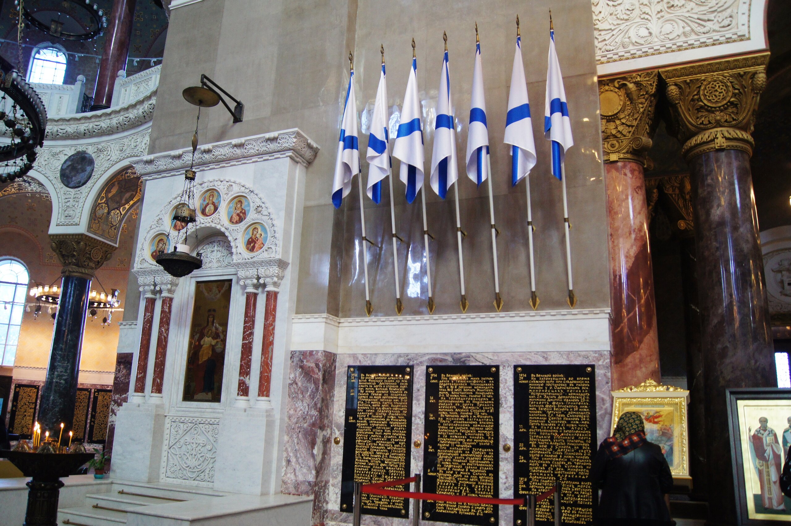 Опубликовано 14 сентября, 20205 г. Автор comment_831975 Какая-то притягательная магия у этого собора. Почему-то мне хотелось его снимать. Многие годы собор использовали не по назначению, устраивая в нём зрительные залы, клубы - он был местом для проведения весёлого досуга. Всё это великолепие, которое сейчас можно увидеть, воссоздано заново с помощью длительных и сложных реставрационных работ по архивным эскизам и старым фотографиям. Но самое главное, что возрождена память о погибших героях. Так как 14 февраля 1930 на площади устроили митинг против религии, сбросив колокола и кресты с собора. Новая власть даже хотела поставить на вершину купола красную звезду или скульптуру В.И. Ленина. Потом произвели демонтаж мраморного иконостаса, сняли доски с именами героически погибших моряков, закрасили художественные росписи и мозаичные иконы. На памятных досках в Соборе золотыми буквами написаны имена всех погибших моряков, не только в боях, но и при исполнении служебного долга, офицерских чинов морского ведомства (флотских корпусов, по адмиралтейству, гражданских и медицинских чинов, священнослужителей и гардемарин), вне зависимости от вероисповедания. Всего досок 130. Есть также доски из белого мрамора, на которых высечены имена погибших священнослужителей. Иконостас Морского Никольского собора. Хорос - церковный светильник. Он символизирует древо жизни и имеет вид колеса, подвешенного с помощью цепей к потолку храма. Необычно светлый храм, просто невероятно светлый! И на душе было также светло. Даже сейчас, рассматривая фотографии четырёхлетней давности, я ощущаю какое-то тепло и умиротворение... Боковые галереи храма. Галерея второго яруса. Декоративные решетки, закрывающие современные отопительные приборы, также восстановлены по фотографиям и архивным документам. Дверь на выходе из храма. Я не всегда захожу внутрь храмов, будь я дома или за пределами страны. Иногда что-то не пускает. А в Никольский морской собор зашлось очень легко. Думаю, что этот храм обязательно надо посетить, тем кто приезжает в Кронштадт. Но это, конечно, сугубо моё мнение.. Жалоба