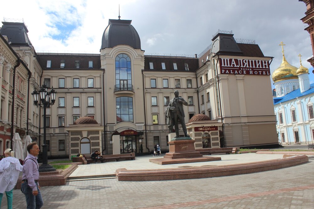 Опубликовано 25 октября, 20205 г. Автор comment_835089 Продолжаем экскурсию... Слева здание Химического корпуса КГУ (ныне КФУ). Ранее, до 1671 года здесь располагалась Воскресенская церковь, в честь которой улица и носила название – Воскресенская. В глубине слева видим бывшее здание женской гимназии, в которой на данный момент располагается Академия РАН по Республике Татарстан. А перед зданием стоит памятник великому математику и ректору (был ректором в течении 19 лет) Казанского, тогда еще императорского университета, – Николаю Лобачевскому. Следом мы видим здание – дом Зинаиды Ушковой. Сейчас в нем находится национальная библиотека Татарстана. Внутренняя отделка дома выполнена так же с большой роскошью, как и фасады. Помещения первого этажа покрывает золочёная лепнина, парадная лестница выполнена в псевдовосточном стиле. Здесь много скульптур из бронзы и дерева. Окна покрывает витраж с изображением экзотических птиц парижской работы. Главный зал отделан в стиле ампир, модного во Франции в первой трети XIX века. Потолок зала выполнен в виде ромба с пышной лепниной. Стены столовой из морёного дуба, по сторонам есть хоры для оркестра. Самое интересное место в доме – Зимний грот. Здесь дамы сплетничали после ужина, пока мужчины курили трубки. Существует также легенда, согласно которой Алексей Ушков (почетный гражданин Казани, промышленник) решил сделать свадебный подарок своей суженной, и заказал известному архитектору Мюфке данное здание. Все было сдано в срок, но, вот беда, свадебный подарок не понравился новой хозяйке, по её словам: “Это здание – верх безвкусицы”. После чего она отказалась переезжать в этот дом. Семейная жизнь через 3 года развалилась, Зинаида комнаты дома сдала. Кстати, такой же дом находится и в Москве, где в свое время жил Сергей Есенин. Ну вот и есть, что посмотреть справа. И это Казанский университет, один из старейших в России, основанный в 1804 году. Знаменитая студенческая площадь — Сковородка, на который стоит молодой Володя Ульянов. Стоит и смотрит на строгие колонны. Стоит и не знает, что через несколько месяцев будет участвовать в студенческой сходке — и заработает свою первую ссылку. Сейчас Сковородка одно из любимейших мест студентов. В Казанский университет пришел учиться молодой Лев Толстой — будущий автор «Войны и мира» имел очень даже большие проблемы со многими предметами, особенно с историей. Дед его, граф Илья Андреевич пять лет (1815 — 1820 гг.) был казанским губернатором. Его младшая дочь П. Юшкова привезла в Казань рано лишившегося родителей, 13-летнего племянника (а также его брата и сестру). Лёвушка вел весьма праздный образ жизни. «Казанские старожилы помнят его на всех балах, вечерах и великосветских собраниях, всюду приглашаемым, всюду танцующим» (Н.П.Загоскин). В итоге закончить учебу в университете ему было не суждено. Таким образом, оба университет не окончили, одному из них даже памятник напротив поставили. А второй, по случаю своего 80-летнего юбилея, был избран Почетным Членом Императорского Казанского университета, и по решению Совета его портрет был установлен в Актовом зале. Спускаемся вниз к пешеходной улице Баумана. Сеть магазинов «Замок сладостей» первым встречает нас. В свободное время мы сюда заглянем. Поворачиваем направо на улицу Баумана и перед нами памятник Федору Шаляпину на площади 