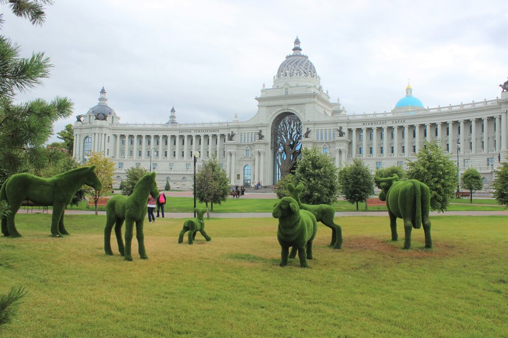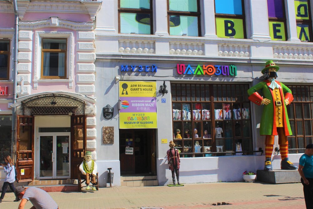 Опубликовано 25 октября, 20205 г. Автор comment_835060 Прохожу мимо мечети Нурулла. Далее захожу в сад Кирова с неожиданной композицией сталинской эпохи «Владыкой мира будет труд» или «Три богатыря», как прозвали ее казанцы. Напротив видим дом Карла Фукса (известного казанского ученого, общественного деятеля, врача) в стиле классицизма. Кроме генералов, ученых и писателей сюда захаживал и Александр Сергеевич Пушкин. Жена Фукса, Александра, писала стихи и Пушкину они (или она) понравились. В дальнейшем он вел с ней переписку. Других мест, где бывал Пушкин не сохранилось, давно снесены. Об историческом прошлом следующего здания я не знаю, но пивной дом оформлен очень привлекательно. Выхожу на главную пешеходную улицу города – Баумана. И сразу бросается в глаза стена с Моной Лизой в современном варианте. Мне не нравится, когда осовременивают выдающиеся произведения искусства. Здесь привлекают внимание здание банка слева и Богоявленская колокольня. Мы еще поднимемся на нее и полюбуемся панорамой Казани. А пока мне – в другую сторону. Фонтан с лягушками. Согласно даосской практике фэн-шуй, лягушки приносят богатство. Погладьте одну из них по спине и попросите денег (или всех, чтобы уже наверняка разбогатеть). Ой, а это кто??? Кто, кто, конь в пальто !!! Смотрите, улица Баумана состоит из невысоких исторических зданий с привлекательными магазинчиками, барами и просто столовыми с недорогими обедами и большим количеством в них людей. А это бронзовая копия кареты Екатерины II, на которой она приезжала в Казань. Здесь нет отбоя желающим сфотографироваться. Интересны афиши будущих фильмов. Предполагают, что в после 10 октября театры и кинотеатры откроются. Открылись ли? Но главной достопримечательностью, у которой всегда толпятся люди, является казанский кот Алабрыс. Упитанный, добродушный кот с довольной улыбкой взирает на прохожих из беседки. По легенде, Екатерина II не увидела в Казани ни одной мыши и пожаловалась, что петербургские грызуны обглодали ценнейшие работы художников в Зимнем дворце. Татары призадумались и подарили царице 30 отменных казанских котов. Говорят, все мыши были были изловлены, а их потомки верой и правдой охраняют художественные ценности в «Эрмитаже». Чтобы привлечь удачу, потрите Алабрысу пузико. Поднимаюсь по улице Мусы Джалиля вверх, прохожу мимо красиво украшенного кафе. Перехожу дорогу и передо мной пряничный Петро-Павловский собор (жаль, что в лесах), откуда начнется пешеходная экскурсия «Казань сквозь века…». Жалоба