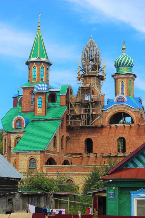 Опубликовано 29 октября, 20205 г. Автор comment_835307 И последнее, что я вам хочу показать в Казани, это Храм всех религий (Вселенский храм). Здесь мы сделали короткую остановку во время поездки в Свияжск. Храм стал строиться в 1994 году Ильдаром Хановым, художником, архитектором, скульптором, поэтом и общественным деятелем. Храм является уникальным в мировой практике архитектурным комплексом, совмещающим православную и католическую церкви, мусульманскую мечеть, иудейскую синагогу, буддистский храм, китайскую пагоду и множество знаковых элементов различных мировых религий, включая символику исчезнувших цивилизаций (всего 16 религий). Строительство Храма всех религий продолжается до сих пор. В уже открытых павильонах размещается картинная галерея, школа искусств и концертный зал, здесь проводятся творческие мастер-классы и концертные мероприятия. Продолжение рассказа об этой поездке я решил показать в отдельных темах, посвященных этим городам (Йошкар-Ола, Свияжск). Возможно у меня хватит сил в отдельных темах описать еще 20 городов европейской части России, из поездки по которым я вернулся в конце сентября. Желающие продолжить эту тему своими впечатлениями, будут только приветствоваться. Изменено 29 октября, 20205 г. пользователем itech Жалоба