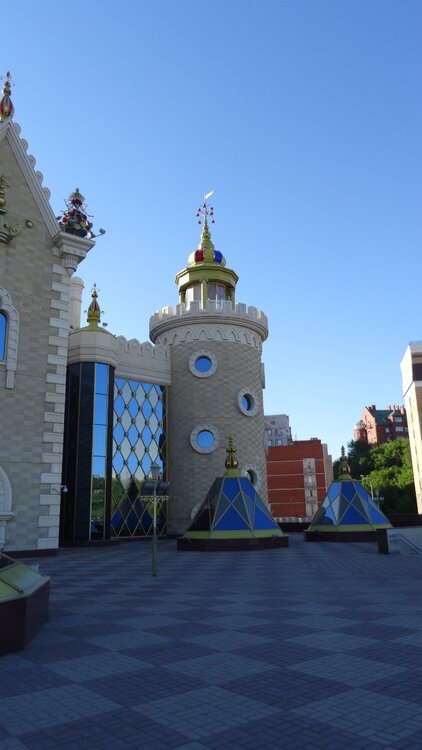 Опубликовано 27 октября, 20205 г. Автор comment_835180 В 15 часов началась очередная экскурсия. И это автобусно-пешеходная экскурсия по городу (память меня подвела, поход в Казанский кремль у меня будет позже). Сначала нас привезли в Старо-татарскую слободу. Ничего нового к своему первому впечатлению от самостоятельного осмотра слободы, рассказанного в самом начале, не добавлю. Следующим пунктом высадки стал этнографический развлекательный комплекс "Туган Авалым" (родная деревня). И находится недалеко от центра (метро Суконная слобода). Бревенчатые домики, пруд с мостиком, поленница дров, колодец, мельница - здесь можно провести целый день. Проводятся мастер-классы по лепке, вышивке, ковке и кулинарии. Можно примерить на себя роль татарской ханши, золотоордынского воина или самого Ивана Грозного: костюмы, сабли, мечи, щиты, короны - всё можно взять напрокат. Сюда хочется вернуться. Потрясающе красиво. Но у нас только минут 20 на осмотр. При входе - огромный эчпочмак - популярная татарская выпечка. В автобус можно было не садиться - метрах в 150 от "Туган Авалыма" находится еще одно чудо - театр кукол Экият. Этот сказочный город с башенками, каменными колоннами, зеркальные окна с отражающимися в них проплывающие облака, многочисленными фигурками кукол - персонажей народных сказок. В репертуаре театра - сказки и пьесы татарских, русских и зарубежных писателей. В него с удовольствием ходят дети и взрослые. А зимой площадь перед театром превращается в ледовый городок с замками, горками и зимними развлечениями. В центре ставят и наряжают красавицу-ёлку, вокруг нее поют, играют, водят хороводы. Едем дальше осматривать город... Жалоба