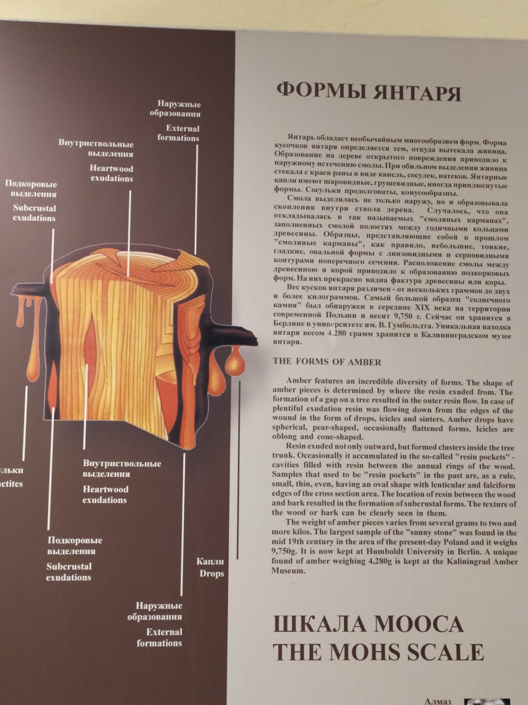 Здесь же можно увидеть кусок янтаря весом более 4 кг и все возможные оттенки этого солнечного камня.