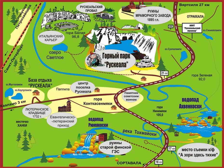 Опубликовано 1 февраля, 20214 г. Автор comment_841106 Несколько фото по пути Рускеальского экспресса. Извините за фото, с приближением не очень - наш вагон был самый последний, а фото делала на телефон. Входные билеты в парк мы покупали заранее, по интернету. Зайдя в парк, мы сразу отправились к стояке автобусов, чтобы добраться до водопадов Ахвенкоски. Для этого надо пройти весь парк (на карте руины мраморного завода не обозначены, но мы шли оттуда, а дойти надо было до цифр 3 или 4, за сувенирным магазином и кафе "Лето" находится стоянка автобусов, место стойнки автобусов обозначены знаком). Автобусы ходят по расписанию. Автобус Горный парк «Рускеала» — водопады Ахинкоски - 11:00, 12:30, 14:00, 15:30. Обратно автобус водопады Ахинкоски — Горный парк «Рускеала» 12:10, 13:40, 15:10, 16:40. Стоимость - 200 руб./чел. (это стоимость билеты в обе стороны). На водопадах дают примерно час времени. Если ты выехал из Рускеалы в 11.00, то в 12.10 возвращаешься с водопадов в Рускеалу. Мы успели на последний автобус на 15.30. Вот такой снеговик нас встретил на водопадах. Жалоба