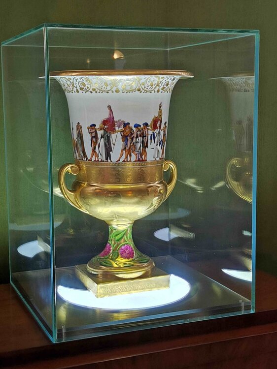 Опубликовано 28 января, 20214 г. Автор comment_840939 В экскурсию входили и комнаты Николая I. Эти комнаты были открыты совсем недавно. Эти комнаты значительно пострадали в результате пожара во время Второй мировой войны. К 1917 году два николаевских кабинета сохранялись как мемориальные, в остальных помещениях хранились велосипеды, кушетка со шкурой медведя и прочие предметы быта поздних Романовых. Первые послереволюционные годы отметились пропагандистской выставкой «Он 30 лет калечил Россию с целью погубить ее»: на стенах вкривь и вкось висели портреты Николая I, мундир был прибит к трону, на полу валялась корона. Музейщики протестовали — вскоре выставку закрыли и вернули покоям исторический вид. В 1941 году при эвакуации художественных ценностей из дворца произведения XIX века вывозили хуже, чем, например, XVIII столетия, лишь по одному предмету мебели. Но спасли живопись, акварели, бронзу, фарфор. После войны Гатчинский дворец занял военный институт, который поступил с николаевскими покоями относительно гуманно, сохранив объемы помещений. Когда «постояльцы» выехали, остались бетонные станины, их пришлось вырубать из пола. Приемная Малый угловой кабинет Камердинерская (фото конца 1930-х годов) В Камердинерской наиболее интересны фарфоровые вазы с росписью сцен из спектакля, который был поставлен в Берлине в 1821 году по поэме Т. Мура «Лалла Рук». Главные роли царевича Алириса и индийской принцессы Лаллы Рук исполняли великий князь Николай Павлович и его супруга. Большой военный кабинет Николая I (фото начало XX века) Главным украшением Большого кабинета служило полотно Иоганна Баптиста Лампи-младшего «Император Павел I со свитой» (265х365 см), написанное в 1799–1802 годах. Известно, впрочем, что изображенные на нем персонажи никогда вместе не собирались. Вероятно, Лампи копировал другие портреты, перенося их на свою картину. В остальных трех помещениях находились любимые Николаем I прусские военные сцены художника Карла Шульца, а также акварельные «таблицы» художников Ланга и Карла Пиратского с изображением русской военной формы начиная со времен Петра I. Во время реставрации были обнаружены детали подлинного подъемного механизма XIX века, где стояло кресло для императрицы Александры Федоровны. Он был сделан на заводе, основанном в Петербурге знаменитым шотландским инженером и предпринимателем Чарльзом Бердом. Изменено 31 января, 20214 г. пользователем Евгения Сорокина Жалоба