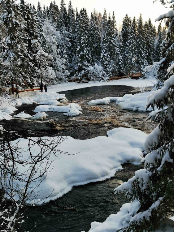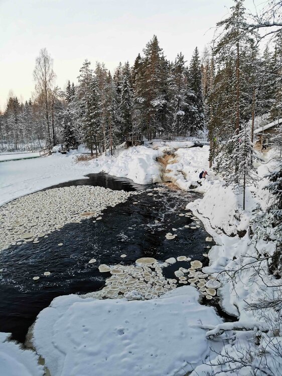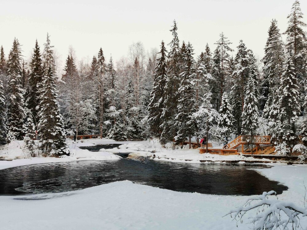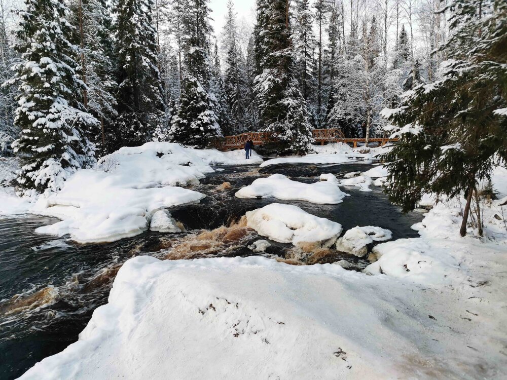 Опубликовано 1 февраля, 20214 г. Автор comment_841107 Вход на территории водопадов платный. В парке две тропы - одна из них подлиннее. Сначала мы пошли по длинной. Потом можно будет зайти в парк еще раз по своему билету, чтобы пройти по второй тропе. В переводе с финского Ahvenkoski означает «Окунёвый порог». Вода в Рускеальских водопадах коричневого цвета, или, скорее, цвета кока-колы. Это связано с тем, что в ней содержатся примеси железа и органических соединений; недалеко отсюда, в Ханки, некогда даже добывали железную руду. Неслучайно река Тохмайоки («бешеная, дурная река») имела еще одно название — Рускеалка, от финского слова ruskea — коричневый, бурый. Впереди избушка из фильма "Темный мир". На водопадах также снимали эпизоды из фильма "А зори здесь тихие". Рускеальские водопады — пороги и перекаты. Над ними протянуты веревочные мостики, которые очень органично вписываются в общее пространство. Жалоба