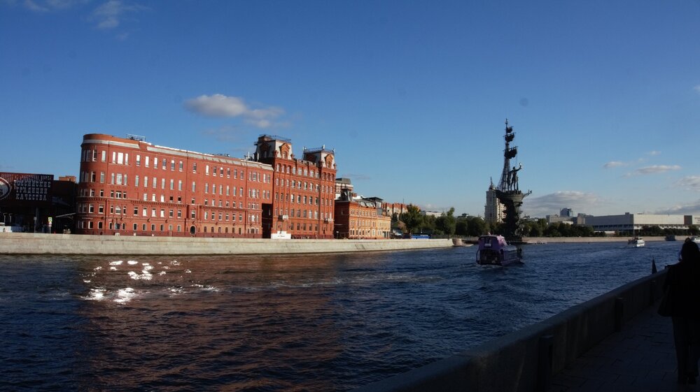 Поняли, что ближайшая остановка экскурсионного автобуса -это Красная площадь, пыл к поездке на нём у меня несколько погас. Да и неизвестно как, куда- вообщем решили оставить до следующего раза.В Париже и Барселоне мы ехали на таком- там можно было выходить на разных остановках, заходить снова,думаю похожая система должна быть и у нас, возможно билет рассчитан на какое-то время.Вообщем надо зайти на сайт и всё прочитать, а не в беспамятстве садиться.)))И мы решили пройти по Пречистенской набережной ,до станции метро "Парк Культуры"- практически оттуда начиналась наша прогулка.Снова дом Перцовой- ракурс уже немного другой.