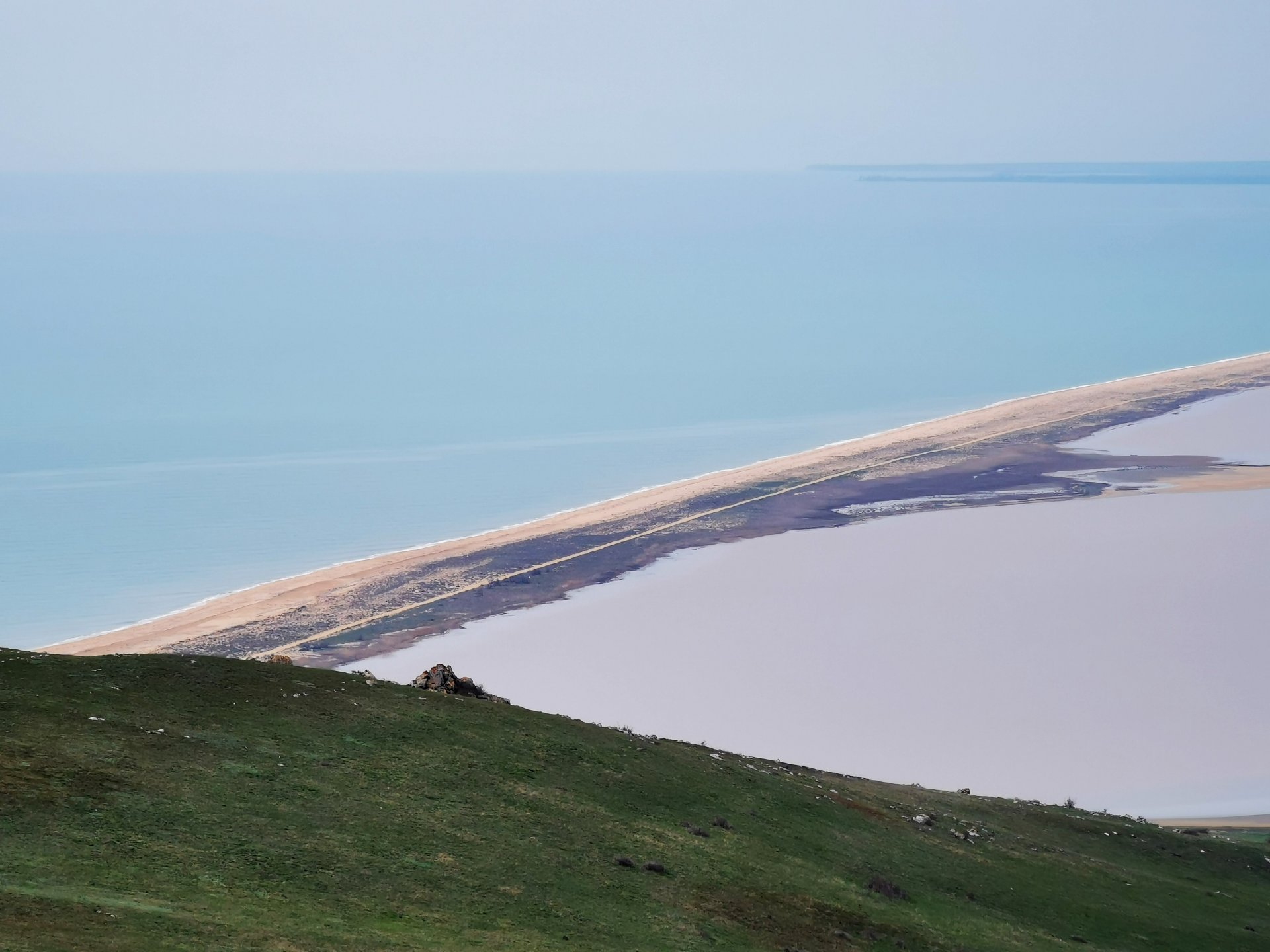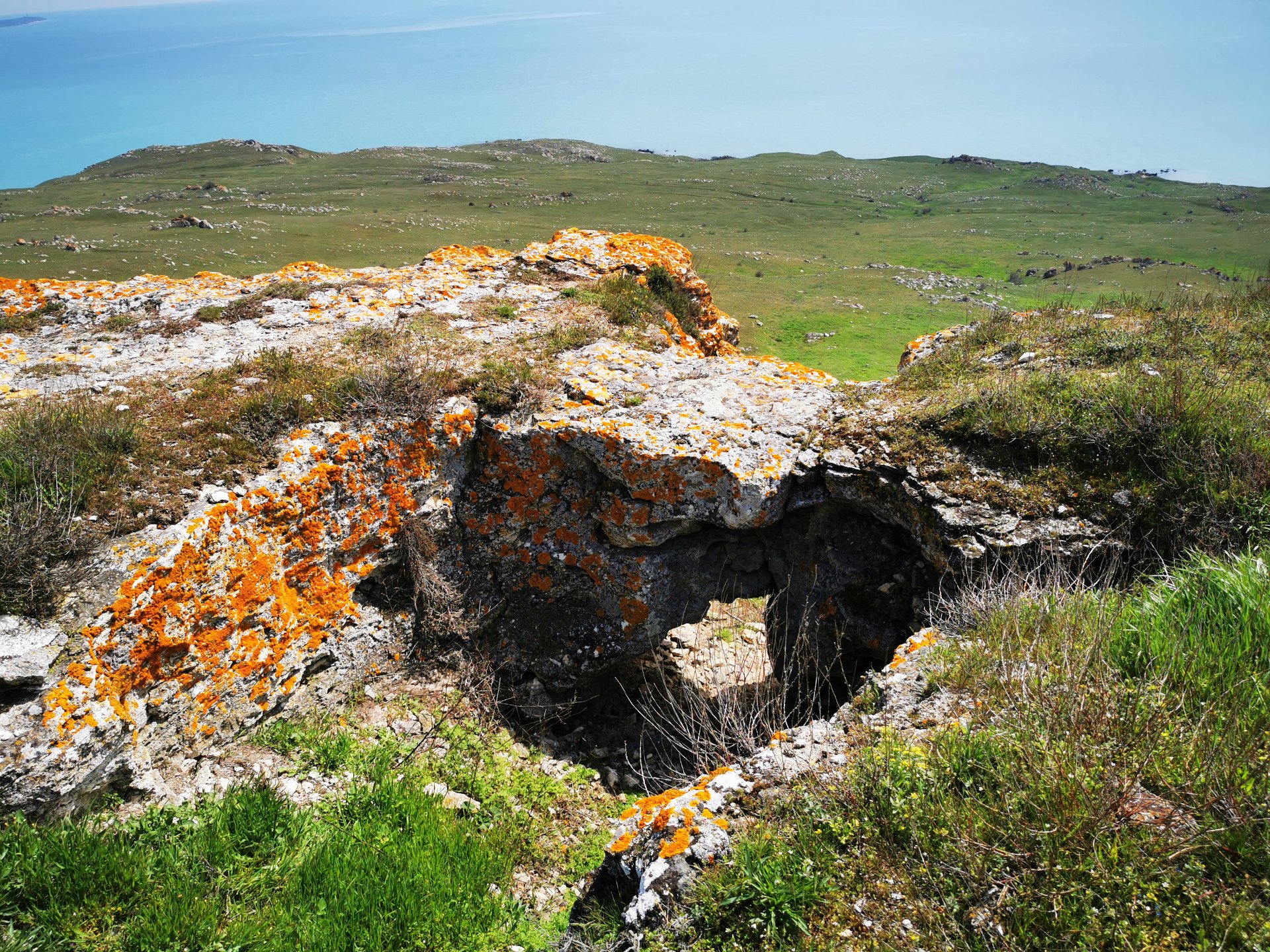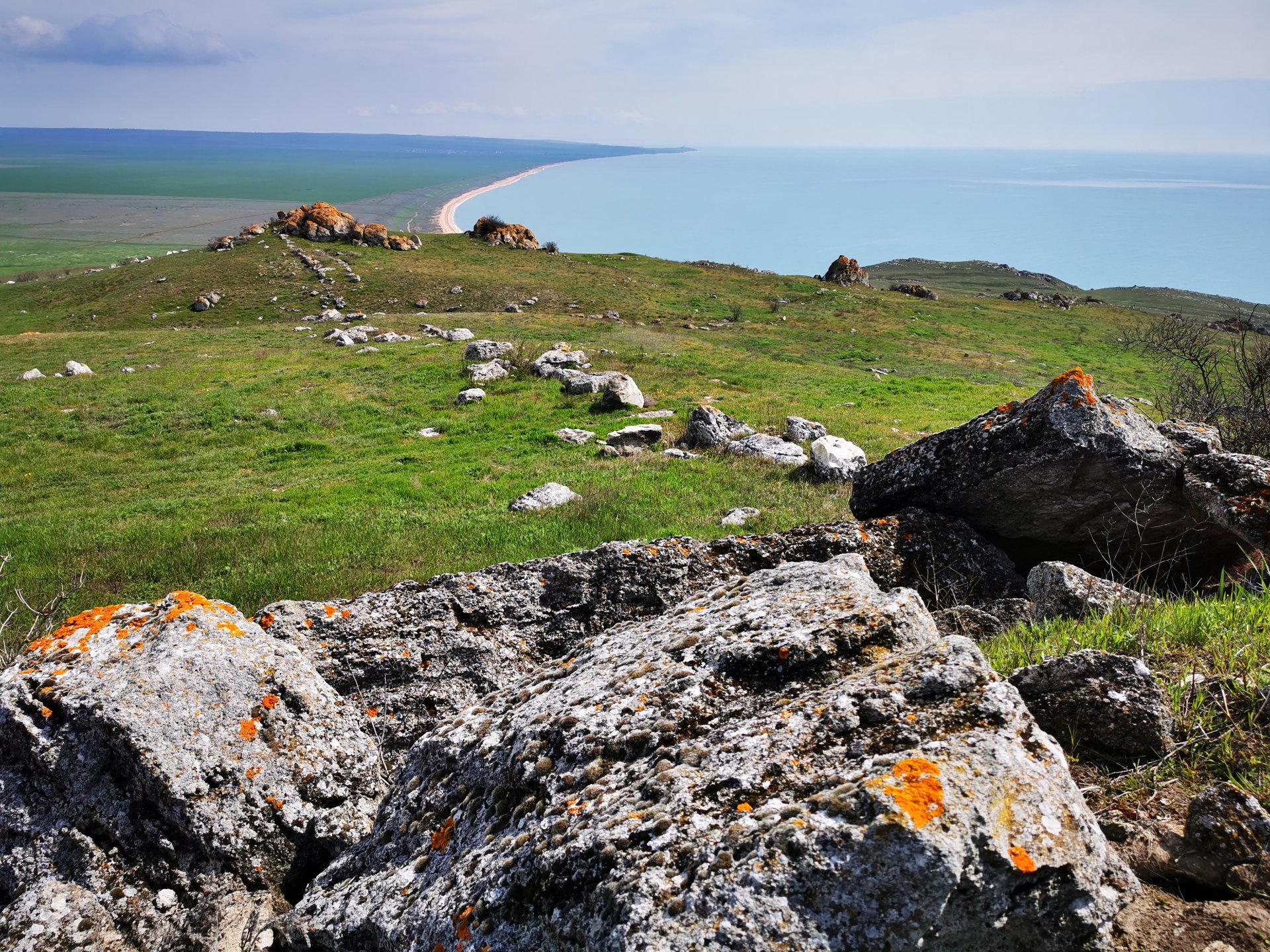 Опубликовано 20 апреля, 20214 г. Автор comment_846006 Чем ещё примечательна гора Опук. Это единственное место в Крыму, где гнездится большое количество удивительно красивых и редких птиц- розовых скворцов. И в период с мая по июль скворцы как раз посещают это место. Но мы их заметили издалека уже даже в апреле. Кажется это были они, с розовым брюшком. Рассмотреть поближе их, конечно, не удалось. Ну а на что нам интернет? Действительно красивая птица. Гора Опук наверху выглядит как плато. Огромная площадь по которой мы и прогулялись. И вроде шли мы совсем недолго, но то место откуда мы стартовали казалось очень отдаленным. Сверху открывается отличный вид на Кояшское озеро. И ведь его розовость проявляется даже в апреле. Во всяком случае на фото это очень хорошо заметно и особенно в сравнении с цветом морской воды. А вокруг тоже было на что посмотреть. Безжизненная летом и осенью степь как раз весной оживает. С Опука открывается вид на четыре небольших каменных острова, возвышающихся над морем более чем на 20 метров. Их называют Скалы-Корабли — Элькен-Кая. Это тюркское название объединяет все четыре скалы, но и у каждой из скал есть собственное имя: Элькен-Кая, Каравия, Петра-Каравия, Эльчан-Кая. Вероятно, одна из скал и дала название всему комплексу. Некоторые ученые в прошлом считали эти острова руинами сухопутного моста, который соединял Крым с Кавказом. Другие предполагали, что это остатки древнего вулкана. Точку в споре поставил знаменитый исследователь Керченского полуострова геолог Николай Андрусов, доказав, что скалы — это глыбы, отделившиеся от горы Опук. Жалоба
