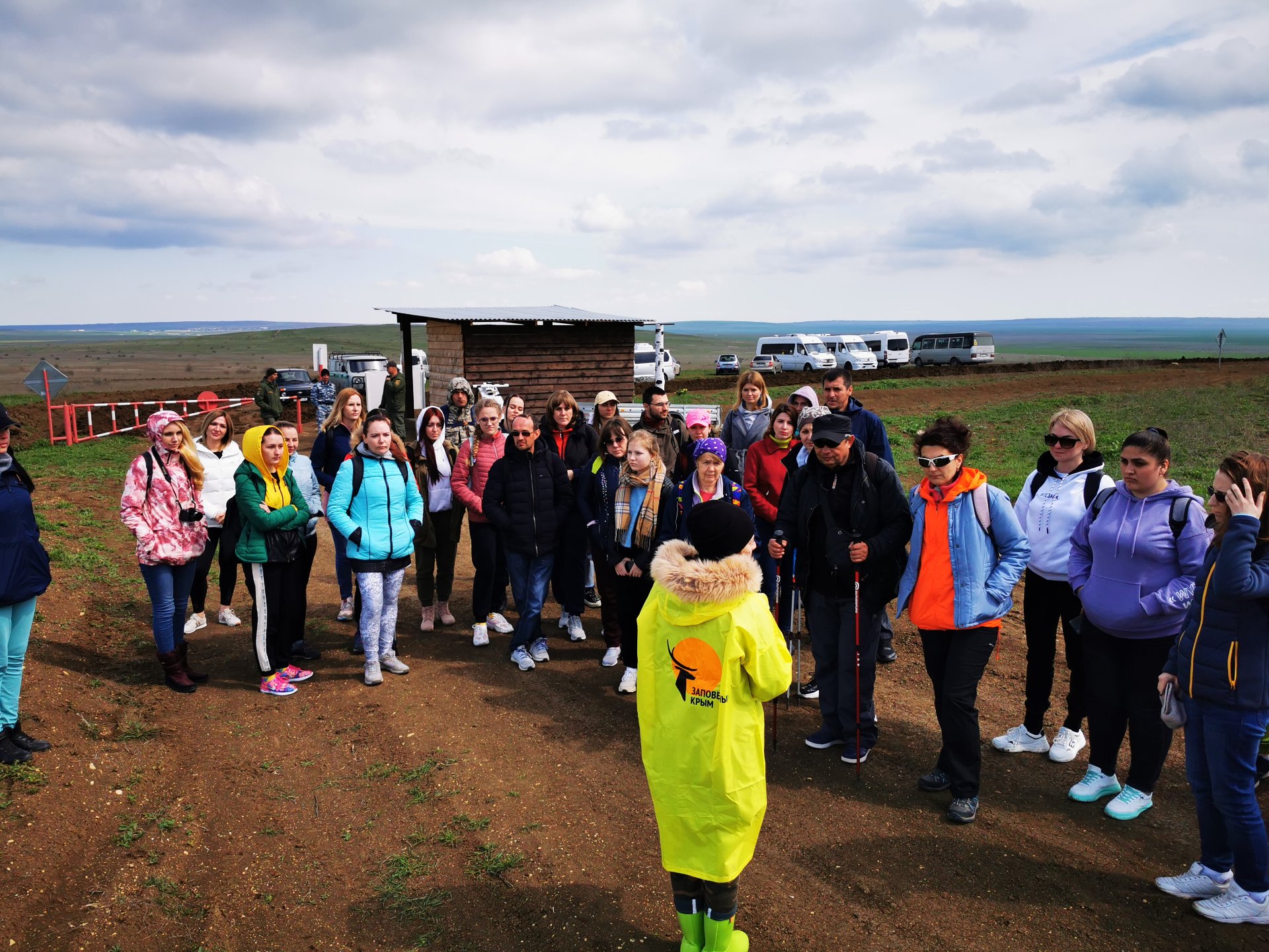 Опубликовано 18 апреля, 20214 г. Автор comment_845902 Наш проводник- молодая девушка из Ялты. Её работа связана с заповедниками и её командируют чаще в выходные дни, в качестве сопровождающей туристов. Судя по её словам, сейчас самое горячее время, ведь цветение тюльпанов длится каких то две недели и в основном люди приезжают в субботу, воскресенье прогуляться по заповеднику и полюбоваться на цветущую степь. Девушка оказалась очень контактной, приятной в общении. Провела, показала, ответила на вопросы. Обратите внимание как она одета. Все части тела прикрыты. Оказывается в заповеднике очень много клещей, поэтому одежду лучше выбирать максимально закрытую. Знакомство состоялось и наша группа наконец отправилась в путь. А тут прямо как в сказке. Налево пойдешь-коня потеряешь, направо пойдешь... Постепенно на глаза стала попадаться необычная растительность. И собственно само Кояшское озеро. Пока оно еще не розовое. Но скоро зацветет водоросль, проснутся рачки Артемия, благодаря которым озеро приобретет розовую окраску. Погода в этот день стояла просто прекрасная. Солнышко выглядывало из- за туч. Идти было очень комфортно, так как было не жарко. У некоторых из нас возник вопрос. А можно ли сюда приехать на своём транспорте, без организованной группы? Можно. Экскурсии проводятся в 10 и 14 часов. Если вы приедете самостоятельно, то вас прикрепят к какой-нибудь группе. Стоимость посещения заповедника 250 рублей. Но наверное лучше это сделать в выходные, чтобы наверняка кто то был. Жалоба