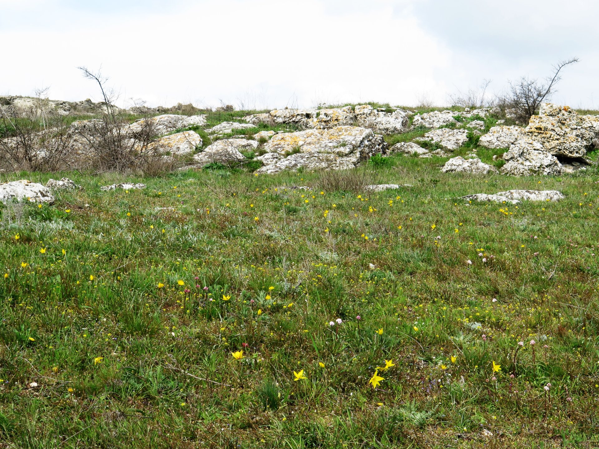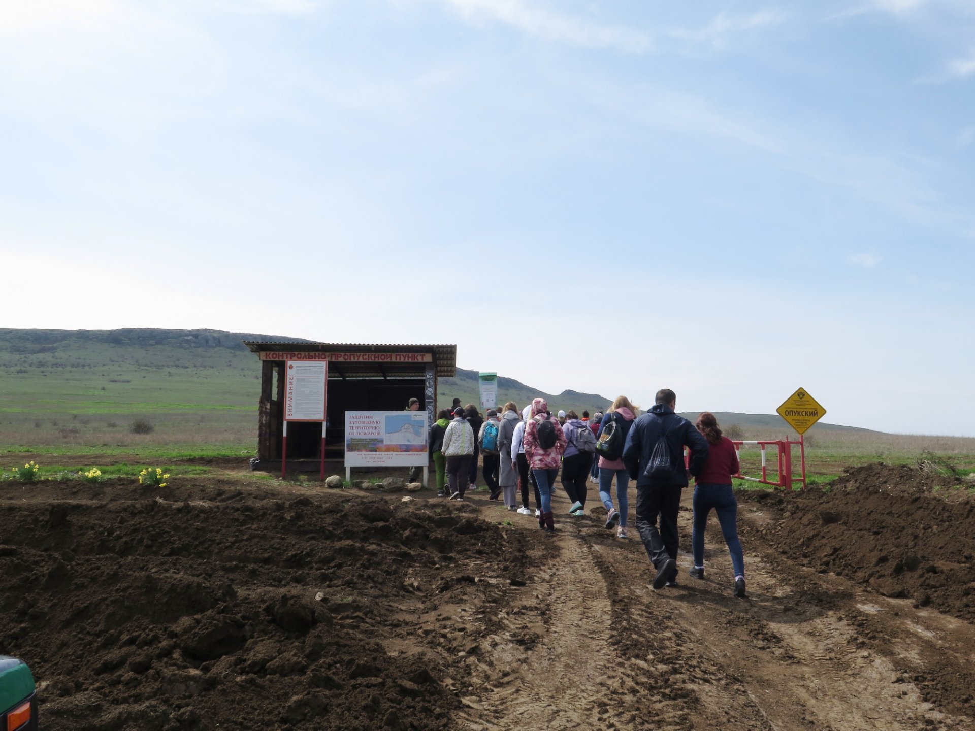Опубликовано 18 апреля, 20214 г. comment_845900 Вчера у меня состоялся выезд в район Кояшского озера, заповедник Опук. Ведь именно с середины апреля здесь начинается период цветения диких тюльпанов. В прошлом году я уже записывалась на это мероприятие. Но внезапно начавшийся карантин не позволил совершить тот поход. В этом году интерес к заповеднику просто огромный. Однодневные туры раскупались как горячие пирожки. И туроператоры вставляли в свои программы всё новые, дополнительные автобусы. Примерно недели за три до старта я внесла аванс и стала ждать поездки. Медлить было нельзя, т. к. количество доступных мест таяло на глазах. Но тут в моём сознании начались серьезные беспокойства. Я вся издергалась. Дело в том, что в этом году у нас выдалась на редкость холодная весна. Практически каждый день шёл дождь и температура не поднималась выше 10-12 градусов. Миллион раз я посещала погодные сайты , вглядывалась на городские клумбы -не зацвели ли тюльпаны. Но погода не предвещала ничего хорошего, а тюльпаны упорно не желали цвести. А тут еще я прочитала в интернете , что открытие балла тюльпанов в Никитском ботаническом саду сильно задерживается- не бывалый случай, когда тюльпаны никак не наберут силу. И только перед самым выездом у нас в городе стали появляться редкие, цветущие тюльпаны и сайты погоды наконец стали показывать, что именно 17 апреля на мысе Опук будет без осадков и выглянет долгожданное солнце. В день отьезда я встала в 2 часа ночи, так как выезд был назначен на 4 утра. Народ чётко собрался и мы поехали. И примерно в 8.30 мы уже двигались по Крымскому мосту. Какое всё же грандиозное сооружение. Всё сделано так, что когда едешь по мосту, то море и окружающие берега хорошо видно. И первая остановка в Марьевке. Именно этот крошечный населенный пункт находится в самом начале заповедника. Убогий магазинчик, развалившийся туалет, шанхайные дворы и домишки - вот такая пока реальность заброшенных, крымских селений. Местечко захолустное, но и здесь живут люди. Через некоторое время наш автобус подъехал к контрольному пункту, откуда собственно и должен был начаться наш небольшой поход. А людей и машин уже было не мало. Слегка перекусив, мы отправились к шлагбауму. Хотелось побыстрее попасть в заповедник. Тем более, что кто то оказался попроворнее нас и уже выдвинулся в путь. Проверка была не долгой. Наш руководитель предварительно созвонился и обеспечил нам проводника в заповедник. Сейчас попасть в эти места можно только с проводником. И это очень правильно. Растительность здесь очень хрупкая и нужен присмотр. Иначе наши люди разнесут, растопчут, замусорят, ну сами знаете как оно бывает. Жалоба