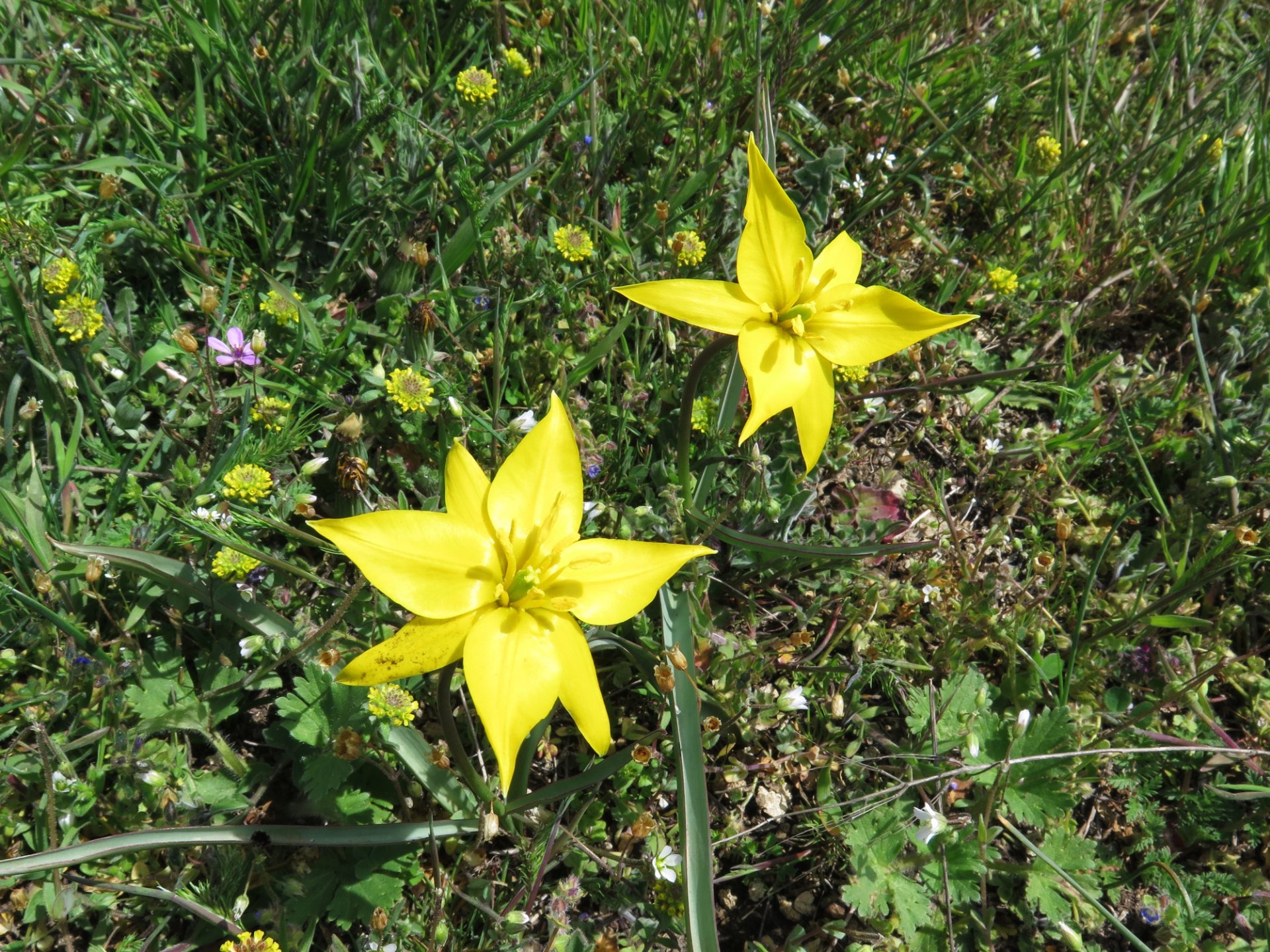 Опубликовано 19 апреля, 20214 г. Автор comment_845971 И вот мы уже наверху. И первые весенние цветочки. Тюльпан Биберштейна назван в честь российского ученого, биолога, путешественника Федора Биберштейна, который привез образцы растения из Серного Кавказа. Занесен в Красную Книгу и относится к исчезающим видам!!! Почему растение находится под угрозой исчезновения? Этот вид тюльпанов размножается семенами. Для того, чтобы семена образовались, растению нужно пройти необходимый цикл развития. Семена созревают в июне, и осыпаются на землю. Прорастают не все, а те которые проросли зацветают только через 5 лет. А это всем известные мускари. И наконец дикие ирисы. Они также занесены в Красную книгу. Карликовые ирисы бывают трёх цветов: ● жёлтый, ● синий, ● лиловый. В Крыму произрастают карликовые ирисы всех трёх цветов. Как правило, если вы увидели ирис одного цвета, то недалеко будут цвести ирисы и остальных цветов. Иногда цветы растут рядом друг с другом, почти вперемешку. Мне очень понравилось разыскивать эти цветочки. Это всё равно, что собирать грибы, когда ты идешь и не знаешь, что именно тебе попадется. Вот ты нашла жёлтенький ирис, а вот фиолетовый, а вот желтый с фиолетовыми вставками, а вот не один ирис, а три сразу, а вот целая группа. В общем очень интересно и увлекательно. И нам повезло в том, что у нас было солнце. Накануне было пасмурно и цветочки не раскрывались полностью. А у нас они хорошо раскрылись. Изменено 19 апреля, 20214 г. пользователем Sveta40 Жалоба