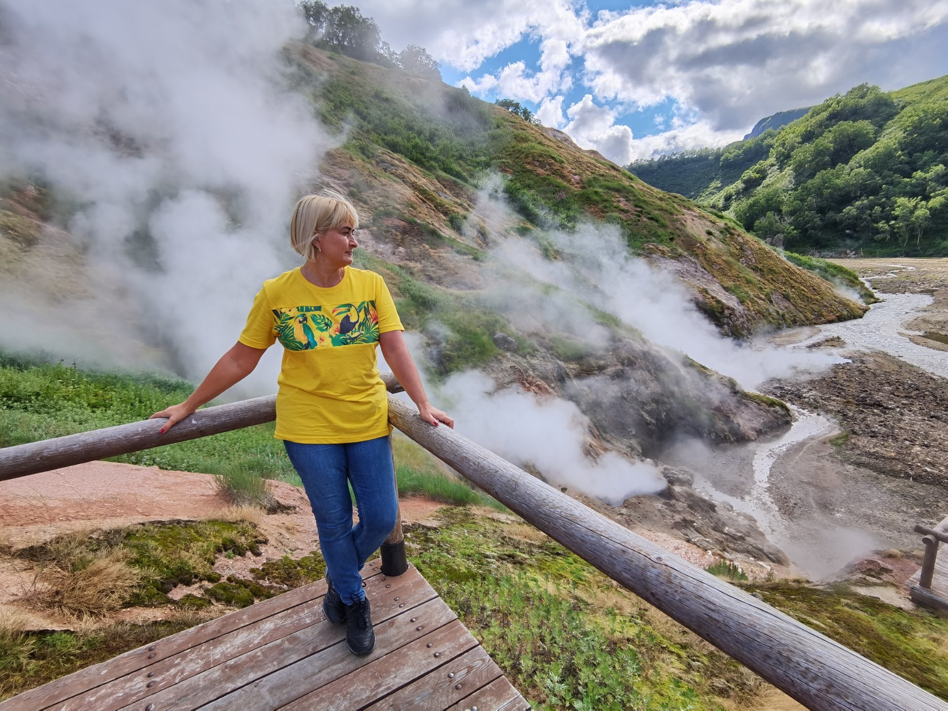 Опубликовано 30 июля, 20214 г. Автор comment_852741 На 20 июля у меня была заранее забронирована вертолетная экскурсия в Долину Гейзеров. Экскурсия дорогая - 46000,но оно того стоит. Я давно мечтала полетать на вертолёте)))). Вылета ли из аэропорта в 12.00 и вернулись ближе к 20.00. Во время этой экскурсии у нас было 3 высадки: экскурсия по кальдера вулкана Узон, затем гуляли по Долине Гейзеров, а затем искупались в целебных горячих источниках Налычевской долины и здесь же поужинали. В итоге получилось 4 взлёта и 4 посадки вертолета. Удалось посидеть в кабине пилота) Виды с высоты птичьего полета Облетели Карымский вулкан-один из самых активных на Камчатке И вулкан Малый Семячик, в кратер которого находится голубое кислотное озеро Жалоба