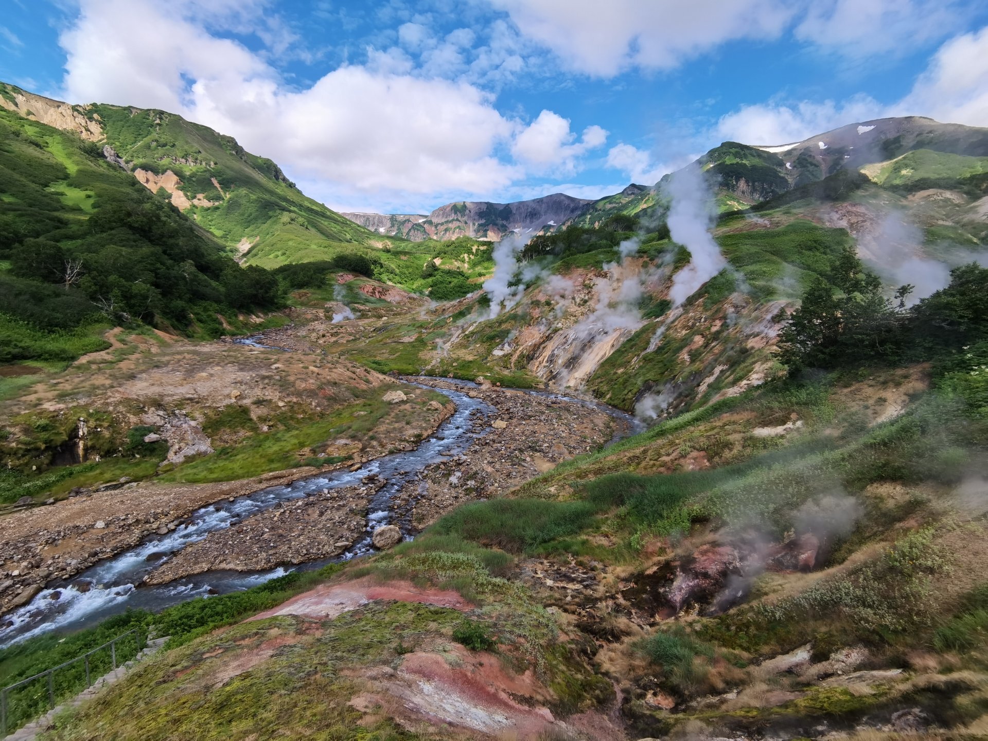 Опубликовано 31 июля, 20214 г. Автор comment_852768 Насладившись дымящей красотой, сели в вертолёт и полетели к целебных горячим источникам Налычевской долины Это естественная речка с горячей водой в пределах 40 градусов Здесь же был организован перекус Жалоба