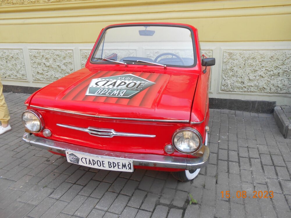 Обедали в кафе "Старое время". Оформление было соответствующее. Возле кафе стояла половинка запорожца, с которой все благополучно сфотографировались.