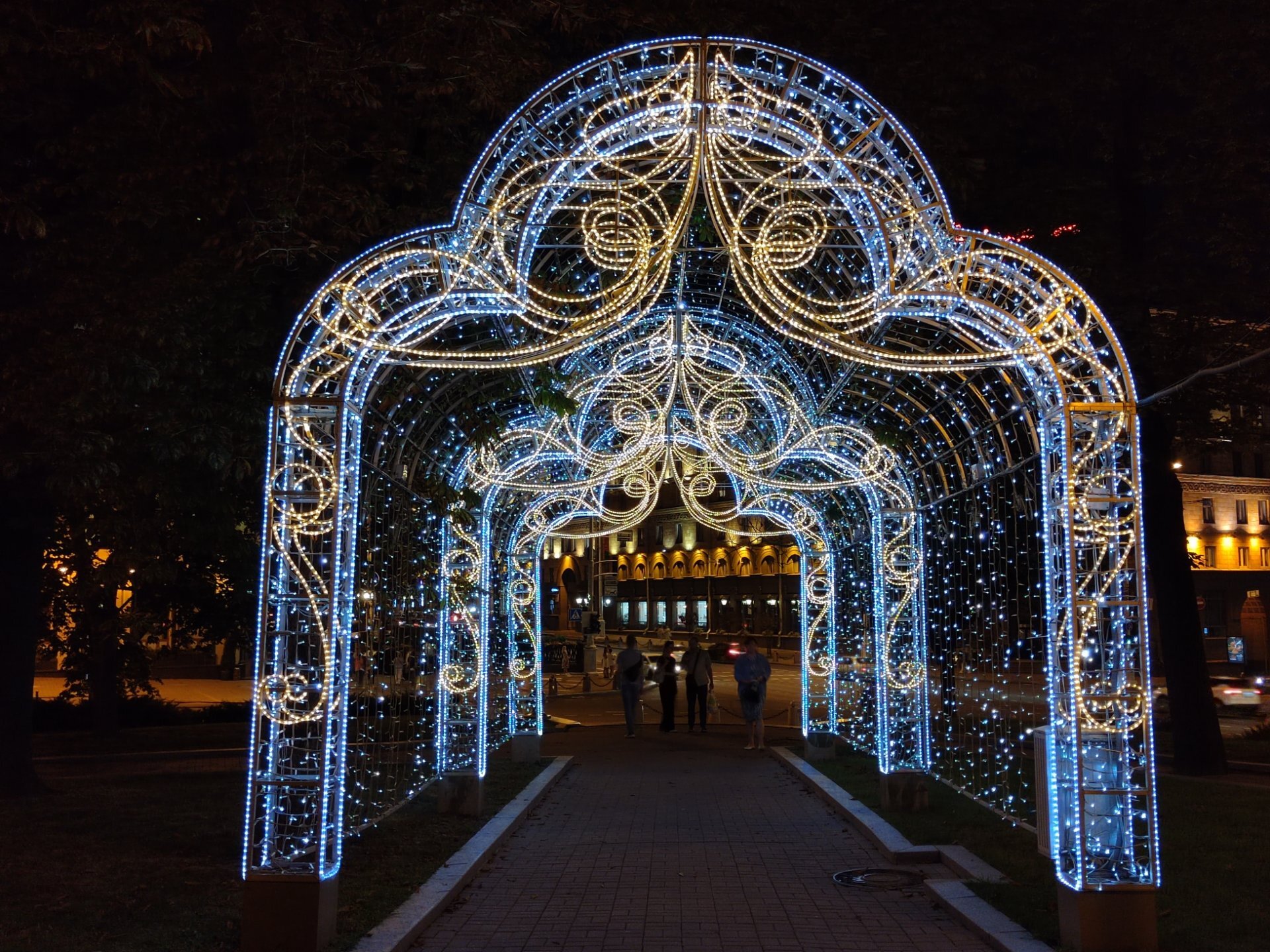 Четко по расписанию мы прибыли в Минск и вышли из спящего вагона, вдохнув свежий ночной воздух и проследовали через центральный выход вокзала. Конечно, я выбрала его не случайно, т.к. под землей можно было выйти напрямую к отелю без эскалаторов. Но мне хотелось чтобы первое впечатление от Минска случилось уже на вокзале, когда вы выходите ночью через центральную дверь вокзала, то вас встречает архитектурная композиция в великолепной ночной подсветке "Ворота в Минск". Я не прогадала с этим))