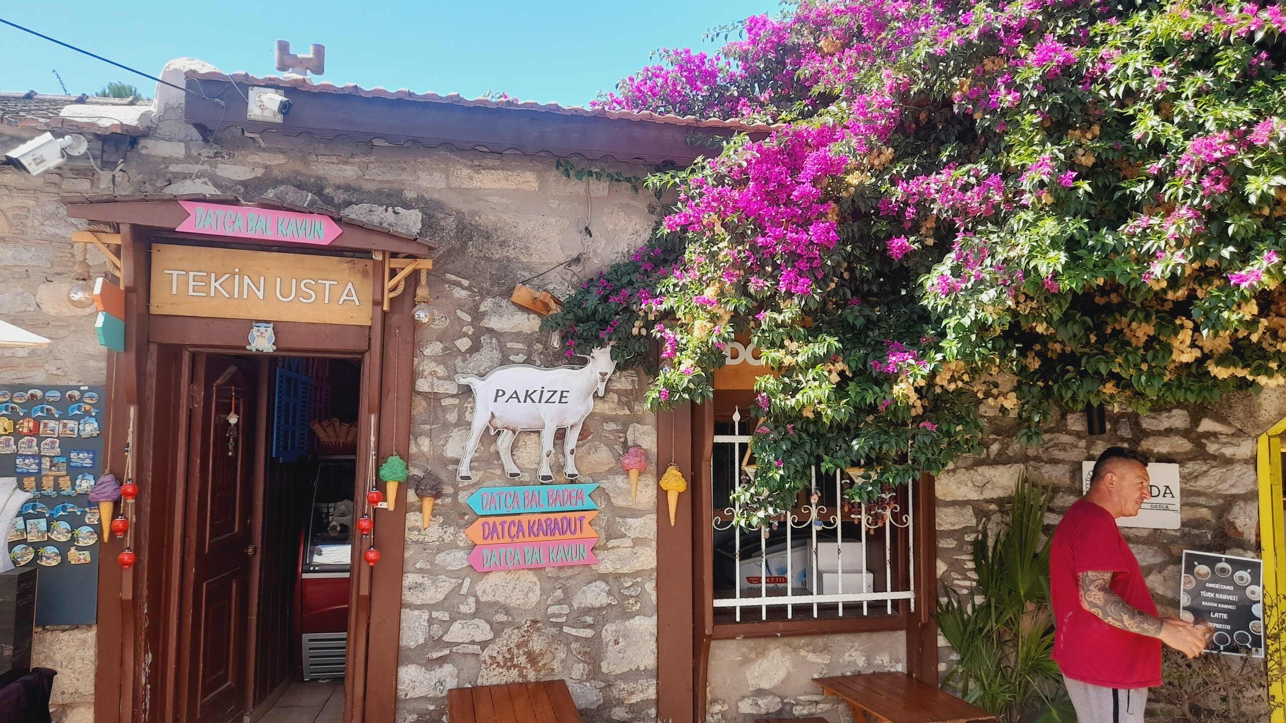 Опубликовано Понедельник в 20:453 д. Автор comment_939834 Датча.Вышли из долмуша на площади, от которой начинается улица Ататюрка. Дорога шла под горку в окружении множества магазинов. В один из них под названием Datçam мы с Мариной зашли. Под этим торговым брендом продаются продукция из мёда, оливковое масло, конфеты, лукум, миндаль и прочие орехи. Фото мы в магазине не делали, а вот около него увидели давно знакомоеВыходим к морю, наша цель найти пляж, и мы его вскоре нашли. Думаю, таких пляжей в Датче десяток.Такой чистой, мягкой и прозрачной воды на пляжах Эгейского моря я нигде не встречал. Получили огромное удовольствие от купания.Настала пора поискать место, где мы смогли бы пообедать. И вскоре его нашли на ближайших улицах. Вот такие, ярко украшенные многоэтажные апарт-отели проходим. Направились далее в направлении порта. Уже настало время возвращаться. Ближе к вечеру долмуши ходят редко, к тому же автовокзал находится в отдалении от центра. По дороге также заглядывали в магазины.У одной из пекарен не устояли и кроме фото витрин прикупили пирожные. Ценники, напомню, надо умножать на два, чтобы оценить в рублях.Дошли до автовокзала, наш долмуш должен был отправиться через час, в 18.30, но салон был уже наполовину занят. Моё предположение о запрете перевозить пассажиров стоя на этом маршруте подтвердилось. Около 10 человек так и не сели в него и были вынуждены кто ждать следующую (с отправлением через 1,5 часа), кто вызывать такси. Наверно всему виной посты жандармов в 15-20 км от Мармариса. Когда их нет (например от Мармариса до Фетхие), долмуш подбирает всех желающих, стоящих более десятка. Изменено Понедельник в 20:483 д. пользователем itech