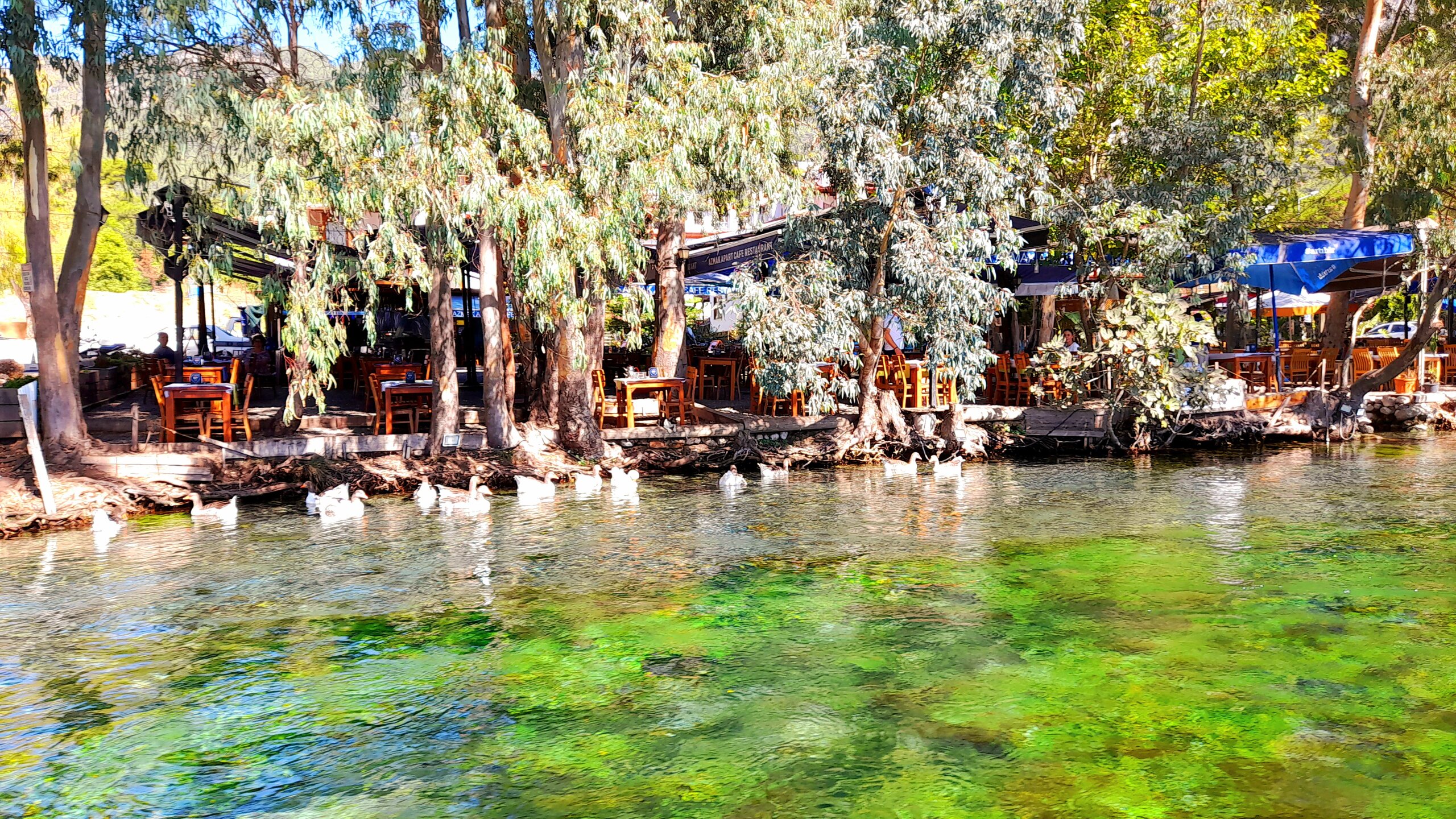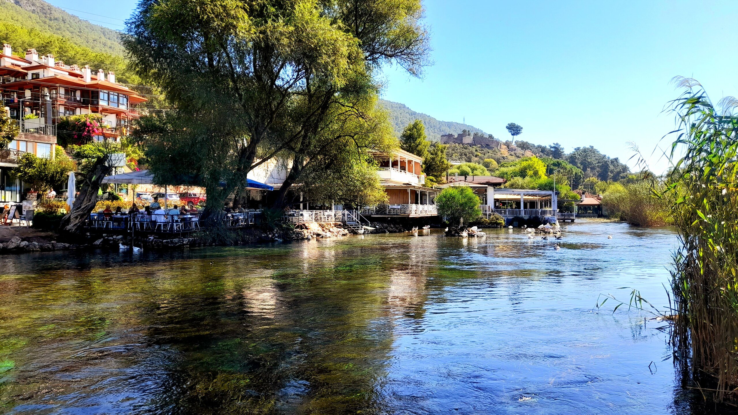 Опубликовано Вторник в 19:022 д. Автор comment_939847 Прогулка по реке-аквариуму Азмак.По приезду в Мармарис, я вновь написал в whatsapp туристической фирме, с которой пару дней назад путешествовал по Эгейским островам. Забронировал две экскурсии на ближайшие два дня. Также утром за нами в отель заехал микроавтобус и забрал нас на место сбора группы. На этот раз море для нас будет дополнительным к экскурсии видом. Отправляемся на этот раз в противоположную сторону. Уже в начале тура Мармарис предстаёт перед нами как на ладони. Любуемся захватывающими панорамами.Делаем остановку на дороге влюбленных, окруженной эвкалиптовыми деревьями. Дышим целебным воздухом, прогуливаемся по аллее и продолжаем путь. Прибываем в порт городка Акьяка, расположенного у подножья горы Сакартепе в заливе Гекова — это совершенно другой мир. Здесь мы не увидим больших отелей и шумных туристических групп. Это крошечный городок с размеренной атмосферой, очаровательными белыми домами (не выше двух этажей). В свободное время мы прогуляемся по узким улочкам, вьющимся вверх и вниз, наслаждаясь архитектурой и вдыхая запах хвои и цветов.Здесь начинается маршрут на лодке по реке Азмак, впадающей в этом месте в Эгейское море. Рассаживаемся по лодкам с бесшумным ходом и где-то около получаса нас ждёт путешествие по кристально-чистой воде, где мы увидим множество рыб: форель, лосось и других. По берегу находится экологическая чистая зона парка со множеством отельчиков и ресторанов и отдыхающими в ней людьми. А также огромным количеством уток и других водоплавающих, облепивших берега речки по ходу нашего маршрута.Высаживаемся на берег и у нас немногим более часа на самостоятельную прогулку. Мы выбрали для осмотра сам городок Акьяка, другие прогулялись по парковой зоне вдоль реки Азмак. Изменено Вторник в 21:002 д. пользователем itech